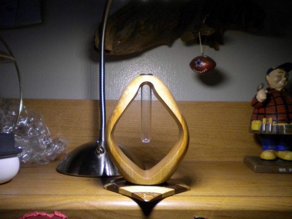 Been experimenting with some inside out turning. Stand and base were turned. Used a 12mmx75mm pyrex test tube for the flower holder.