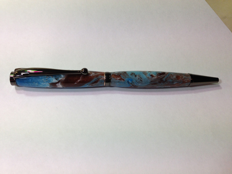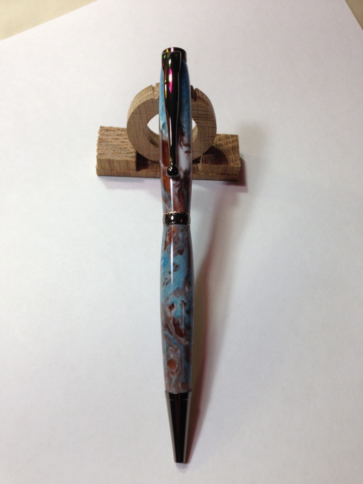 Referring to our PM conversation... A bit of critique. I may be wrong due to the picture angle, but the nib looks proud (larger) than the finished blank. This is where it is helpful to use your calipers and measure the components, and turn/finish to the measured dimensions; don't rely on the bushings. If you have been using the same 7mm bushings for all of the previous slims, I'l wager that your bushings "have lost weight" .