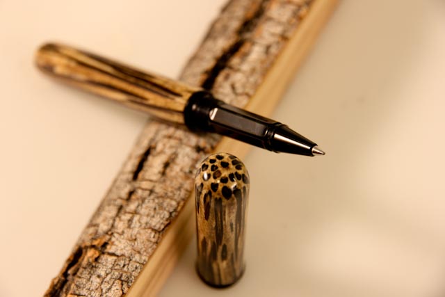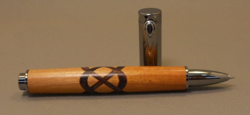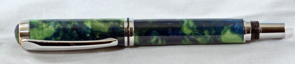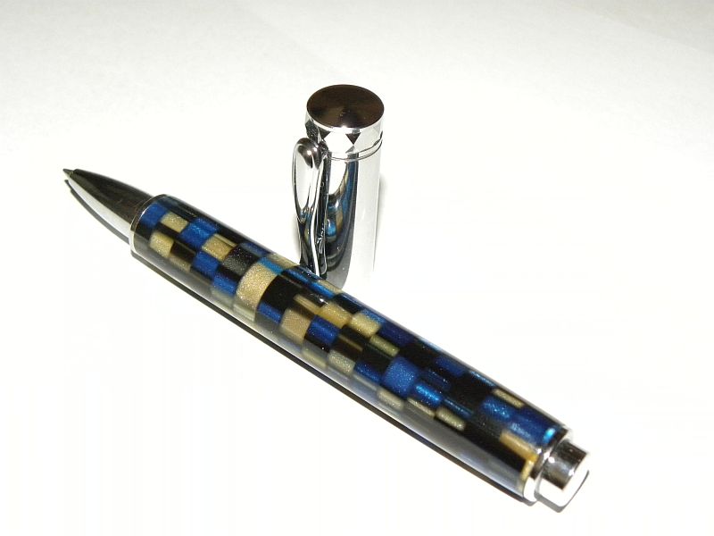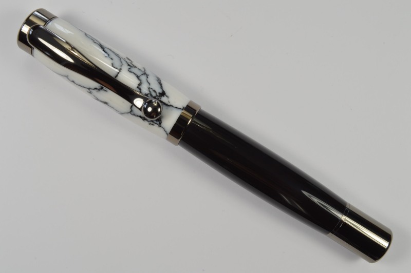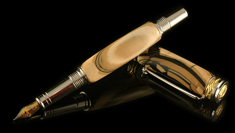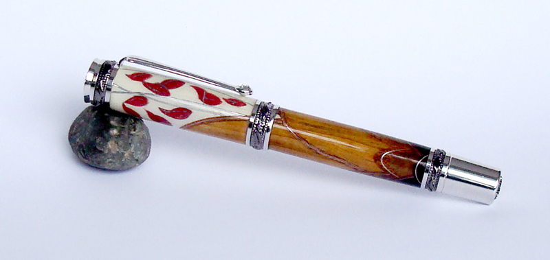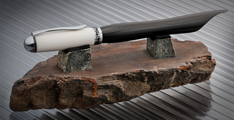 I call this the Ebony & Ivory 57 Chevy. It is a closed end Chrome Sedona Rollerball with an (Alternate) Ivory cap and an Ebony body with an sweeping graceful tailfin.
