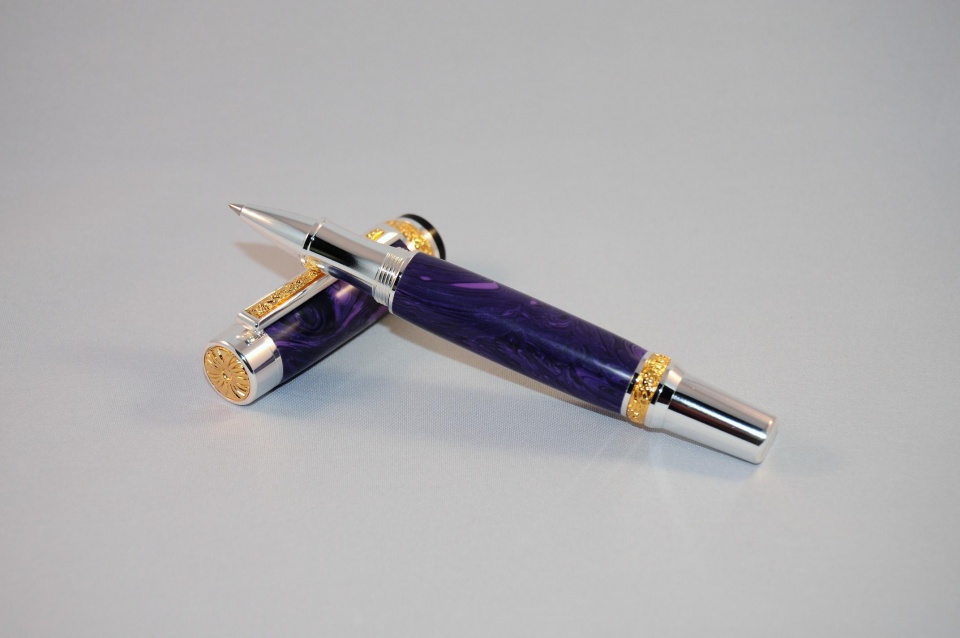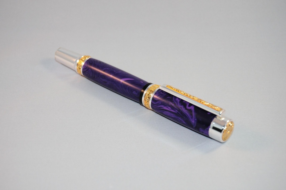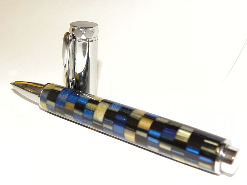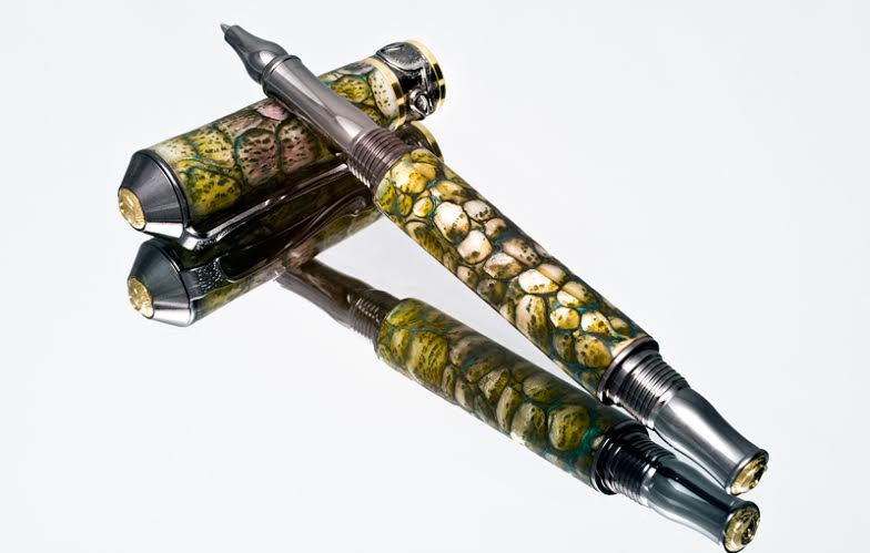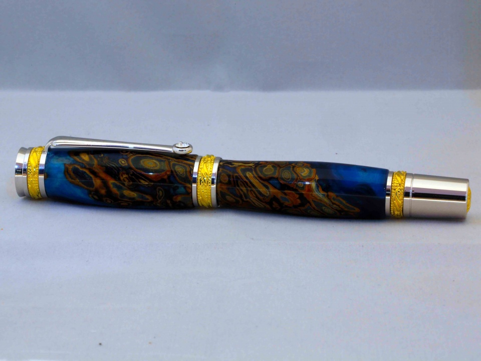Pen is a David Broadwell Art Deco design in Rhodium and 22K gold from PSI. Blanks are Glass Fiber in resin. Sanded to 12000 and polished with One-Step