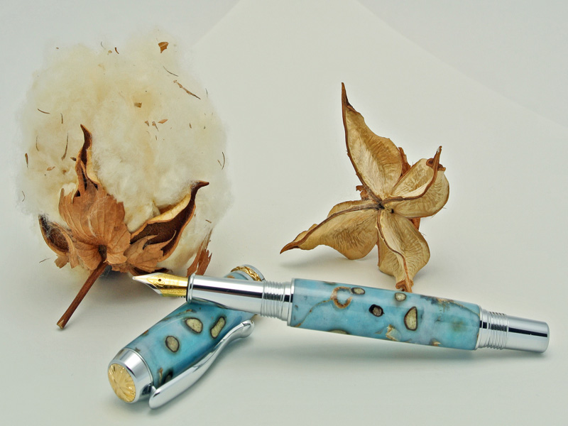 Unique Triton fountain pen made with Natural Cotton, Cotton Seeds and Cotton Pods cast in Alumilite. Finished with C.A. and polished to perfection. Truly one of a kind!