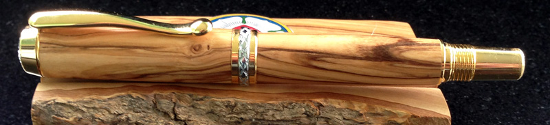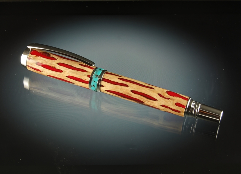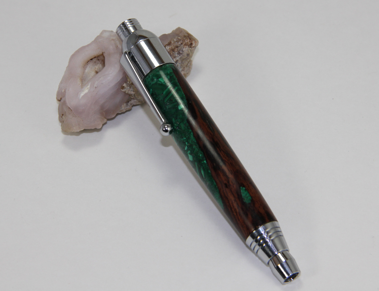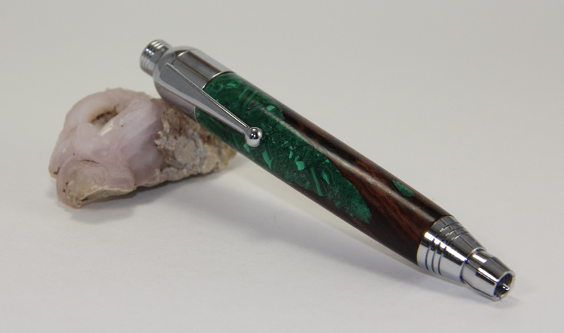 PSI deluxe sketch pencil with hand crushed malachite inlay. Unknown wood but it was very brittle and crumbly. CA Finish