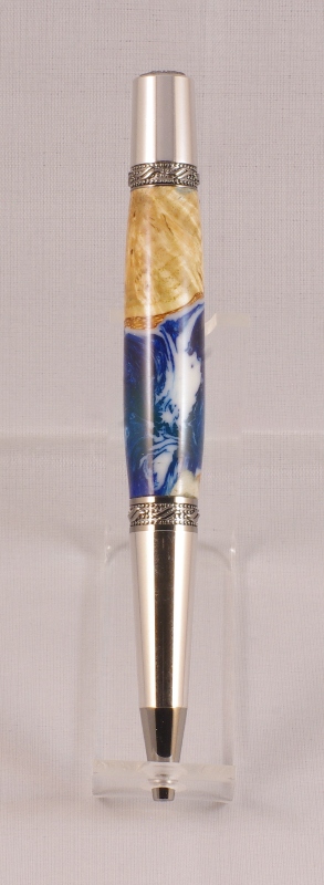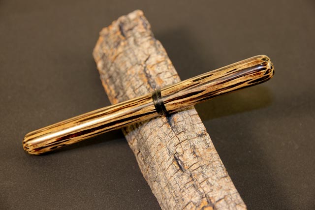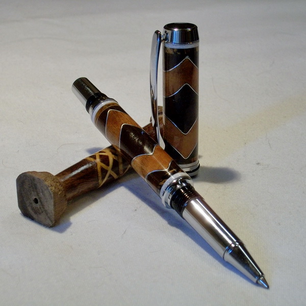 This is a Chrome/Black Ti Major wrapped in a blank sent by one of my pith partners. It is my first pen using "worthless wood," and makes me want to invest in the equipment to do it myself!