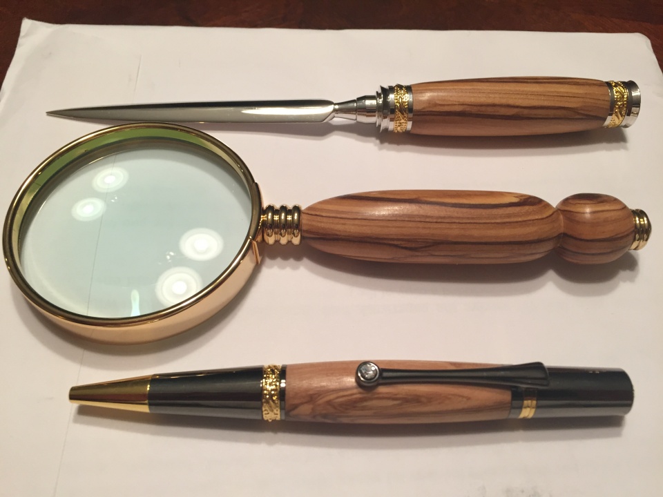 So this evening I grabbed what I had in stock and out a few things together. Obviously I had plenty of Olive but everything else sort of matches but will not get to have a nice display case it anything engraved.