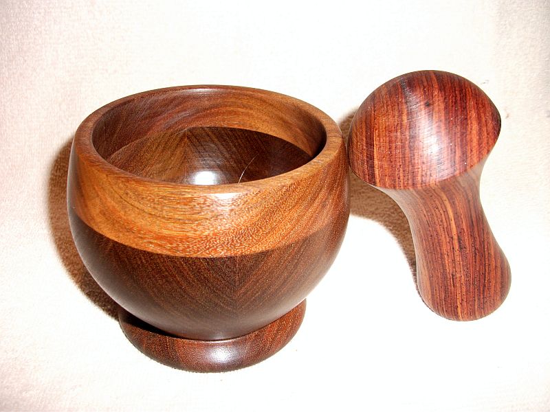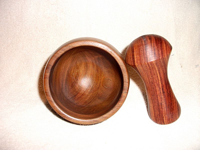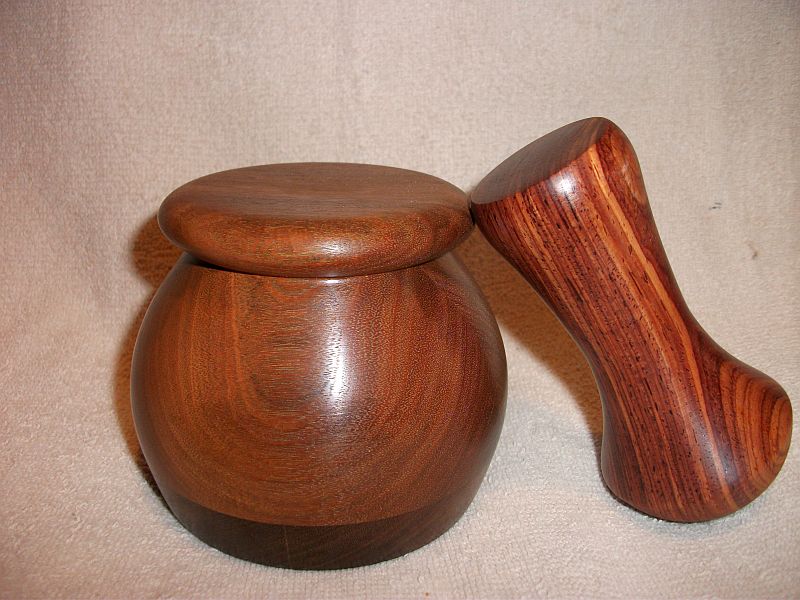 Ended up making another pestle for it out of the ironwood .Same shape as the cocobolo one, just slimmer on the top and bottom.Forgot to take a pic before I delivered it to him.He was really happy, surprised I did it right away.Hopefully he's not to upset but I'll have to ask him for another 5 bucks tomorrow 25 barly covers the cost of wood.It is my fault though because I was thinking of walnut when I said that would be enough,so maybe not.
