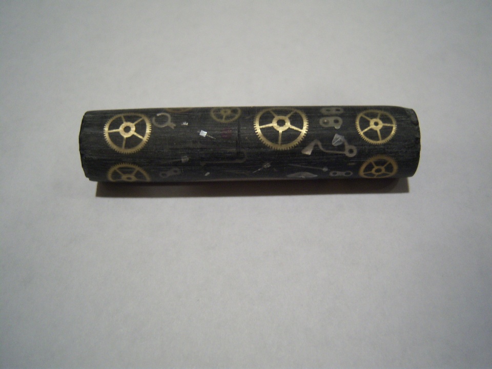 Got this blank and another the other day and was very excited to turn as it's the first watch pen blank I've tried. It was labeled as a sierra and I checked out the nib size on my components and was .4730, finial was .4700. So far so good..started turning and got to .5000 on both ends and got looking closer and saw these shiny spots (from hitting parts?) and worse a small chipout over the face of the clock (between 10-12). Was going to sand the rest of the way but now not sure what to do with this. Almost tossed but thought I'd check out the brain trust here and see if I can save, and more importantly if the other blank is going to be the same situation? I like my pens with a subtle taper and don't know if these were made to be thicker barrels or what happened? At the chip out the thickness left is approximately .006-.007 so I don't have much left. What am I missing??:frown: Thanks for each and every response. BTW the first 3 pics are the mistake and the last 2 are the future beautiful pen( I hope)