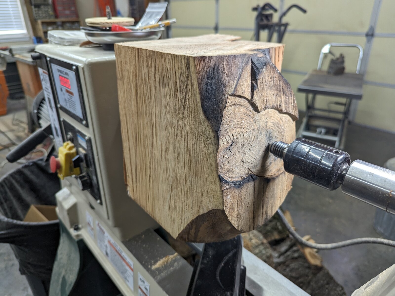 The square-ish block is a hunk of Elm that I dug out of our realtor's burn pile.