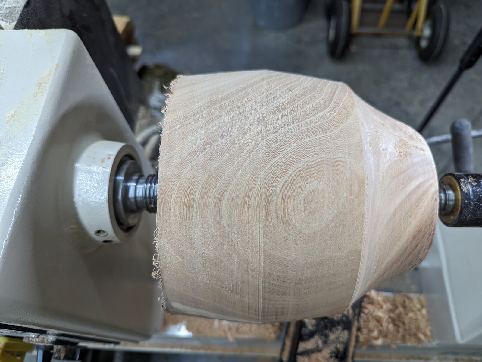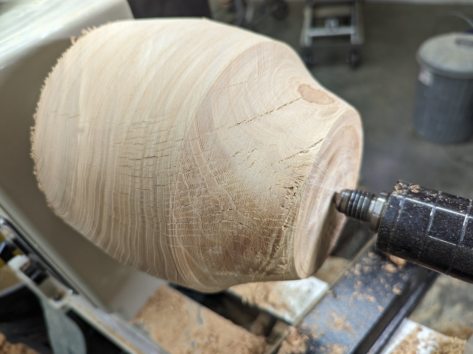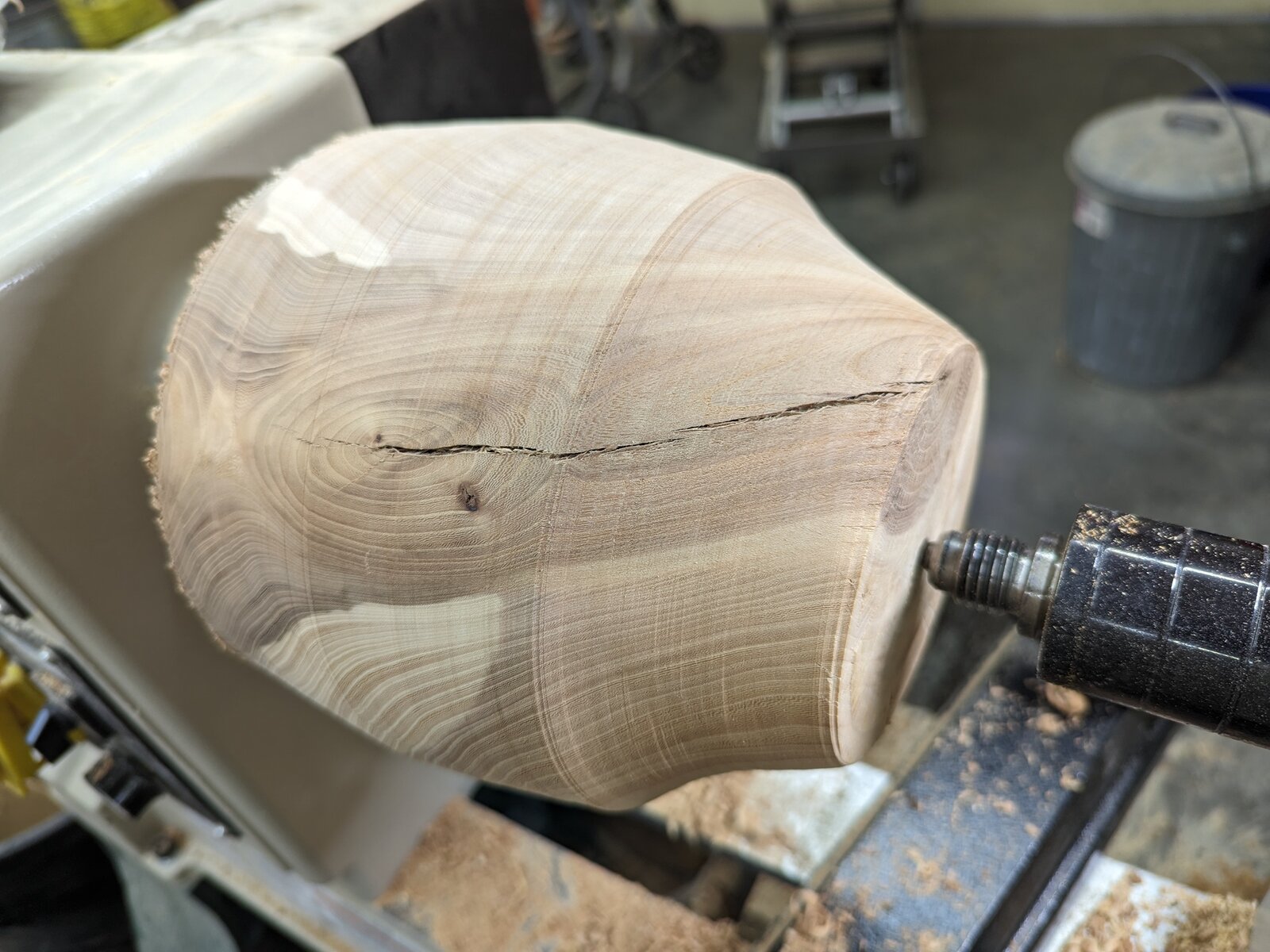 The semi formed round is where it is at for the moment. This is the point of everything is turned cleaned up. The cracks dont bother me too much. It's about 7" dia x 7" long.