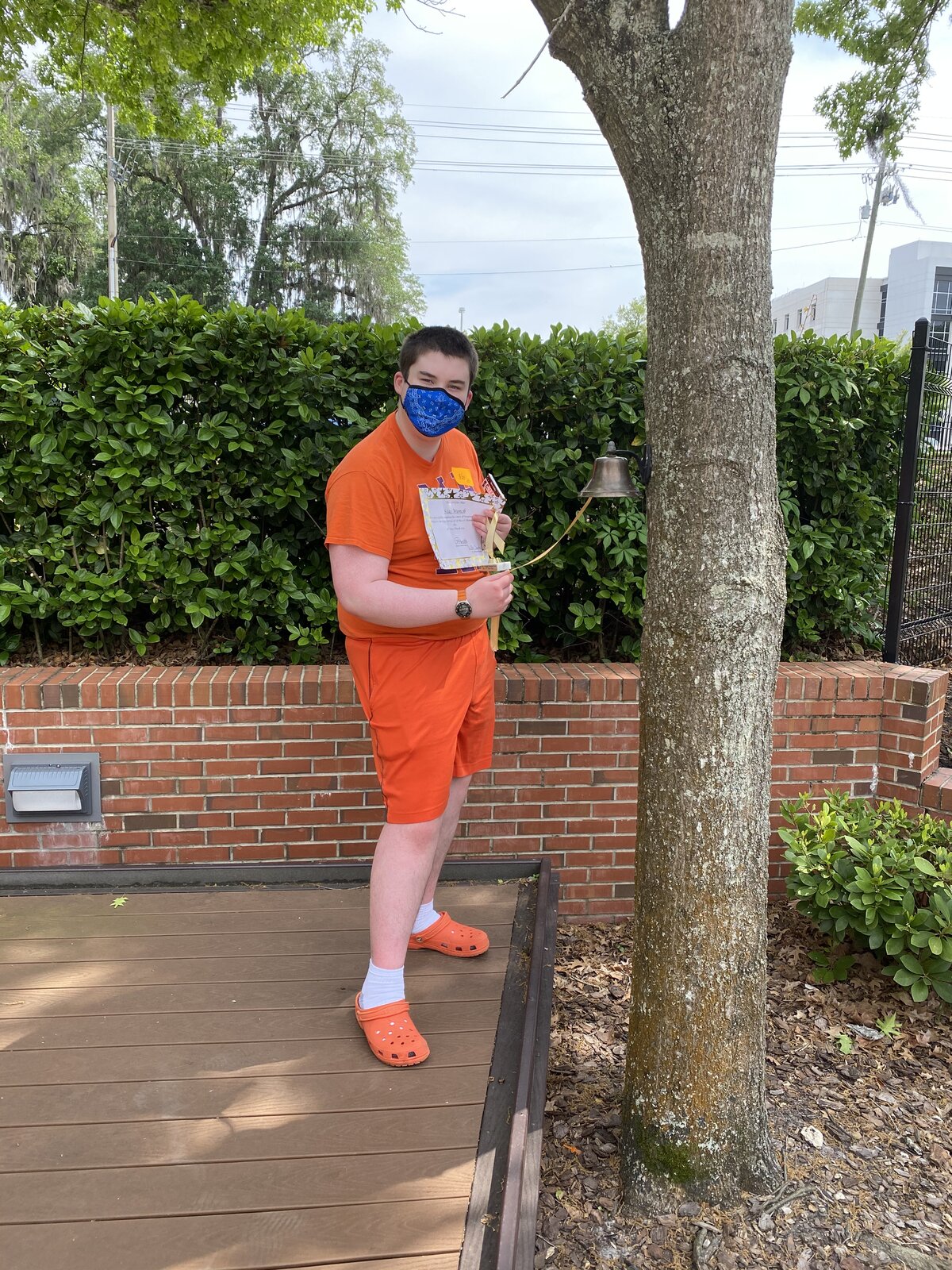 Pics are my son ringing, the pen and the video is when he received it after the bell ringing.
