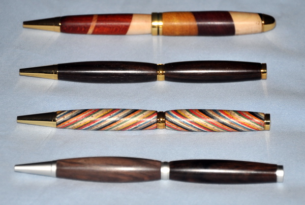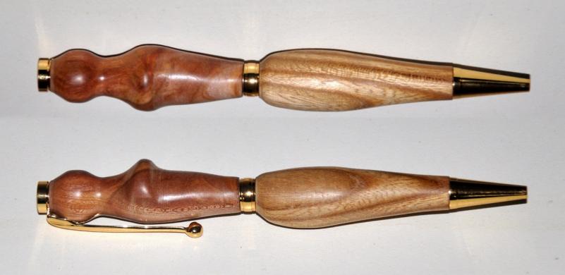 Those maden turned are just stunning I think. You did a great job on them and shows real creativity. They really work as a pen. Nice slim bottom where you hold and then the interesting top barrel. Very nice.