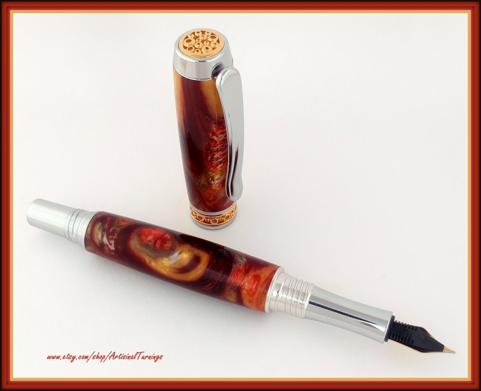 No sooner had I posted the photos of the first Jr Anthony Fountain Pen in Renaissance that I received a second custom order for the same combination. I'm going to have to buy some more of those blanks, they're gorgeous! Thanks for looking!