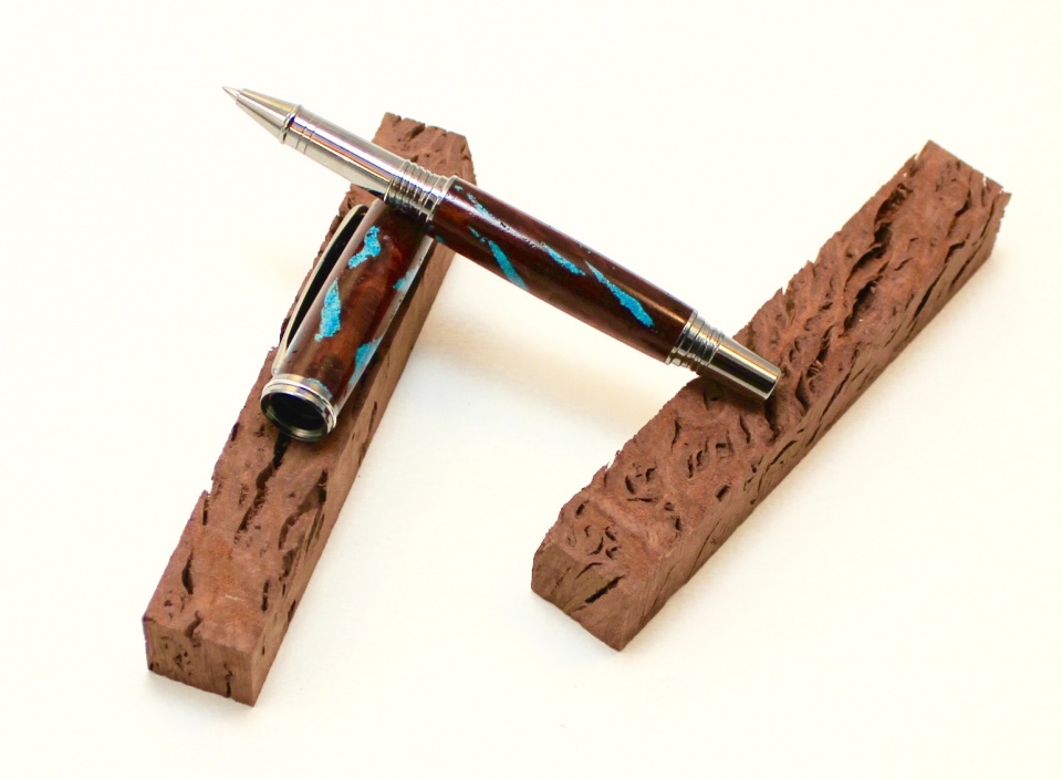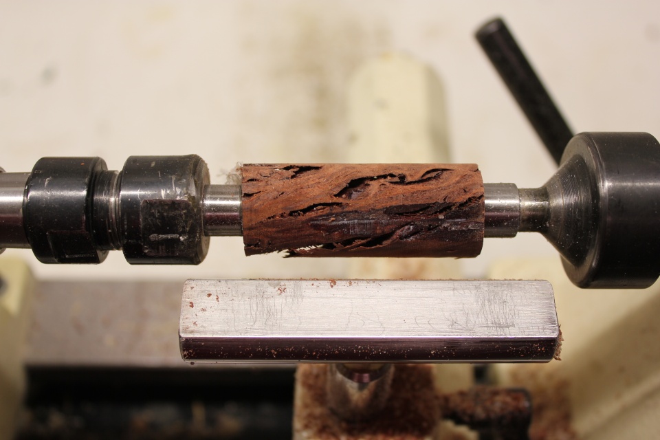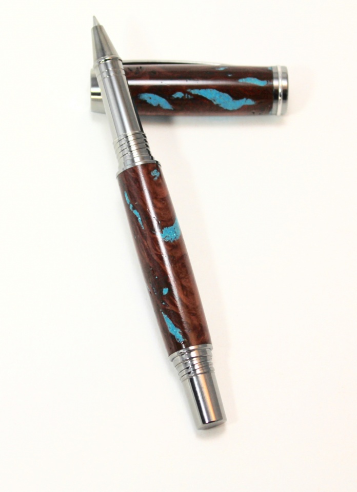 Then the Stuffing with the Powdered Turquoise, applying Gallons of CA, liberally spread into every Nook and Cranny and around the Blank, as well as the Stuffing.