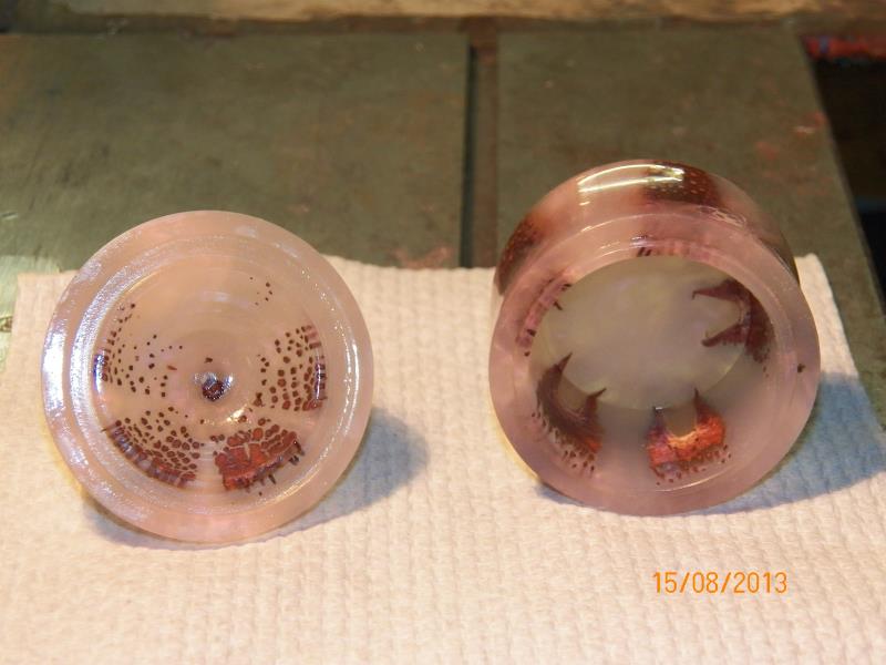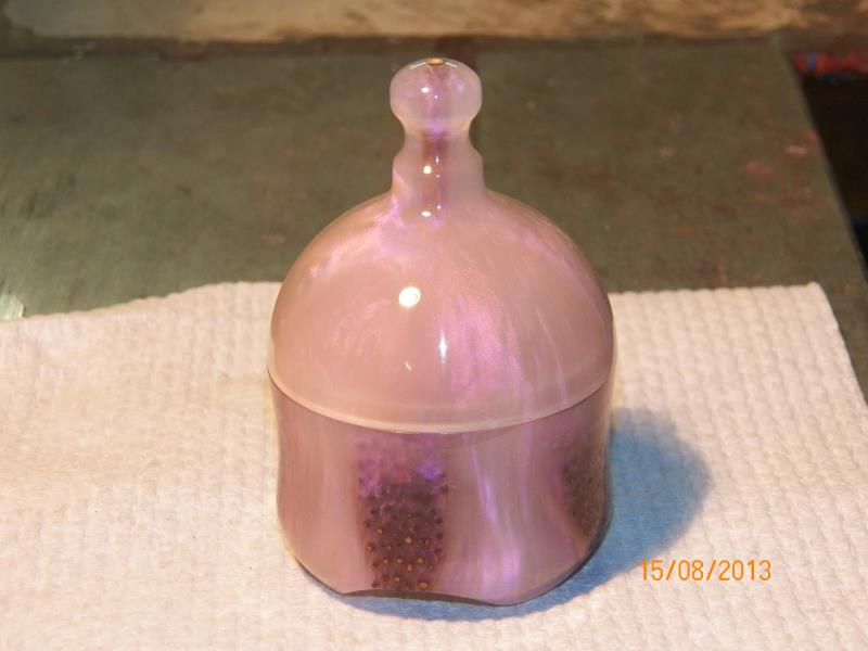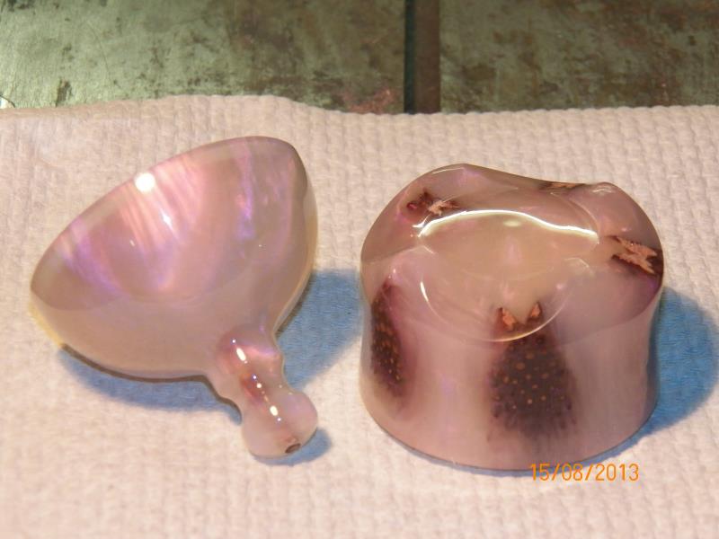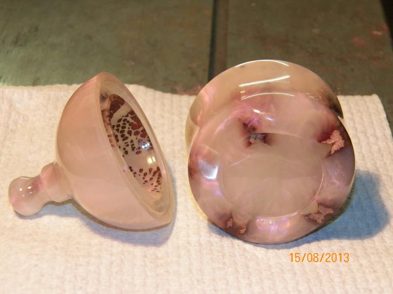 In between all the Resifills I made these last 2 weeks, and with the weather being absolutely marvellous, if you are a damn DUCK, I got a few other things done while I was waiting for the molds to get done on the pressure pot (I only have one pot) so, one of the things was this jewellery box I made for the wife were the idea was to show the beautiful pod I had inside the resin but, when I cast the 3 box blanks, I realise that I didn't have enough bottle bottoms cut so, I used the top half of one the the bottles cut, neck, cap and everything.