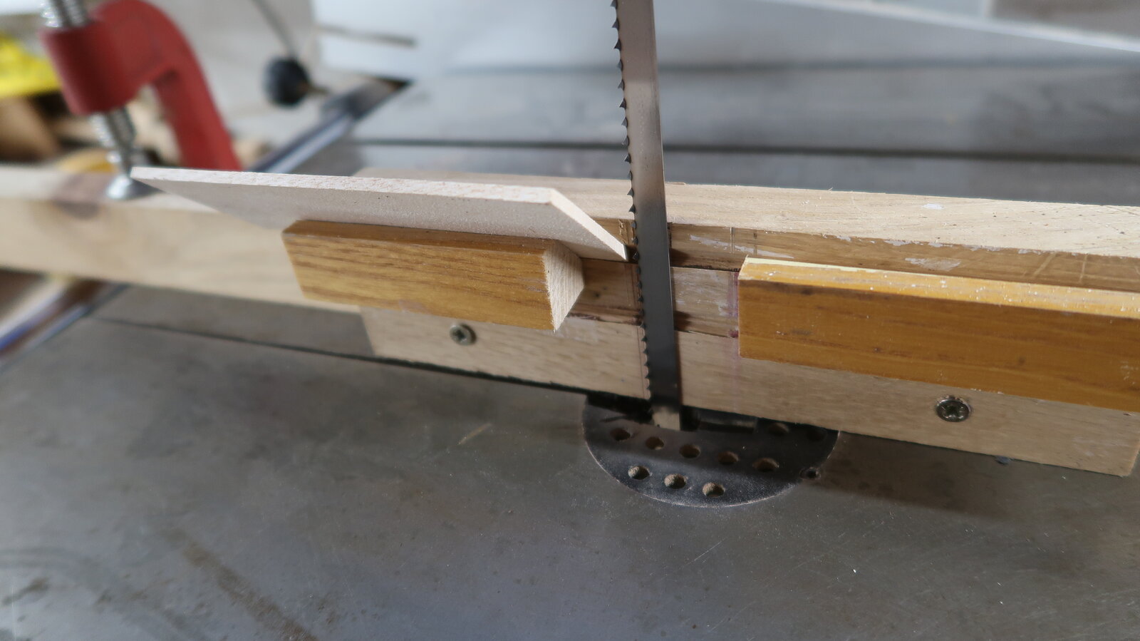 I just made the 'shelves' that hold the material a lot closer to the blade and, as you say, the triangles are a lot shorter.