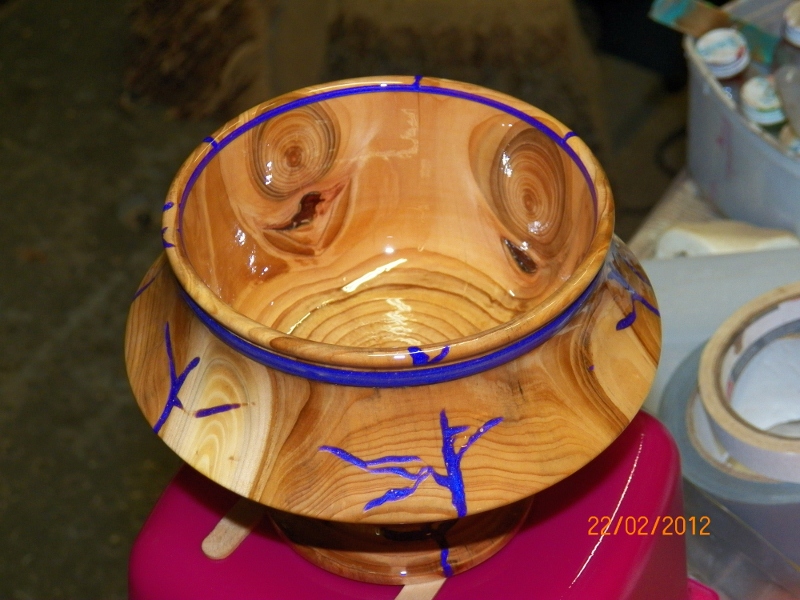 I also tend to let the Pine spalt before I turn it, Norfolk Pine is well know as one of the species that spalts the fastest and the prettiest, the knots formation are also unique and quite pretty. Sap or resin, can be a problem if the wood is not treated well before use, Pine sap/resin can be easily neutralized by "roasting" the wood for a few hours, the use of foil paper helps to prevent burn marks in the wood, if the wood is too close with the heating elements but, high temperature will crystallize the liquid sap into a solid crystal that won't affect the finishes so, keep that in mind for when working with pine woods...!