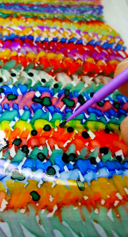 The inks go through some amazing color shifts as they blend; and they dry quickly.