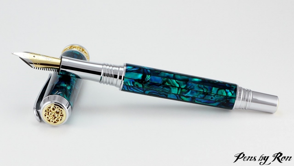 This is a Jr Antony I purchased from Exotic Blanks with one of my teal colored abalone blanks. I think the colors go well with the plating. Thanks for looking.