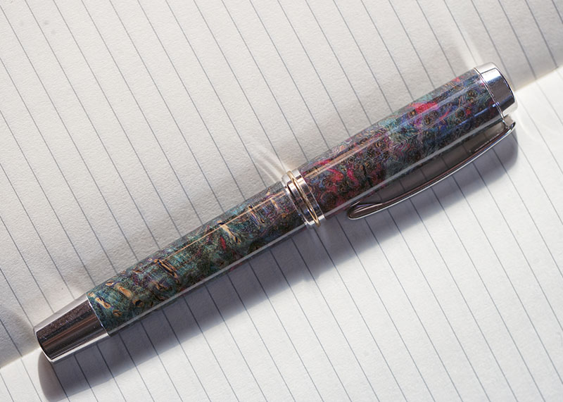 Testing the gluboost system for finishing (really like it!) and digging up some blanks that have been sitting in a box for too long. This blank is stabilized and colored black ash burl (not 100% sure, I forgot to label it 🤦‍♂️) from Foothills Turning (a.k.a. Jason Geer), originally a call blank I recut into pen blank :)