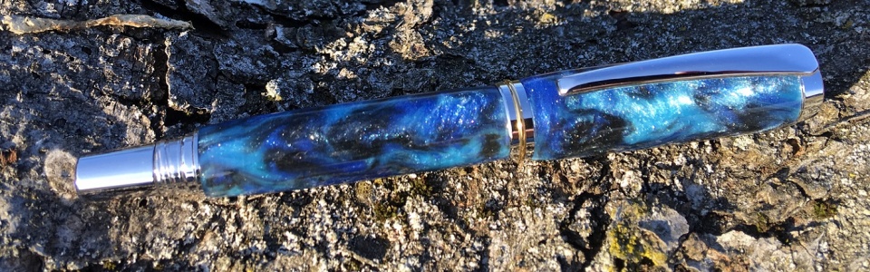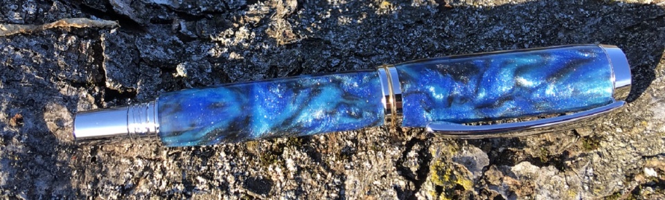 Got this one completed yesterday. At the suggestion of blank's maker, Tim McKinzie, I finished this one with CA instead of just buffing out. Really helped to bring out the effect of the diamond dust. Tried using natural light to show it--still looks much better in person!!