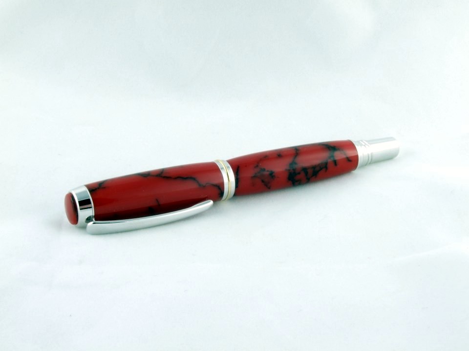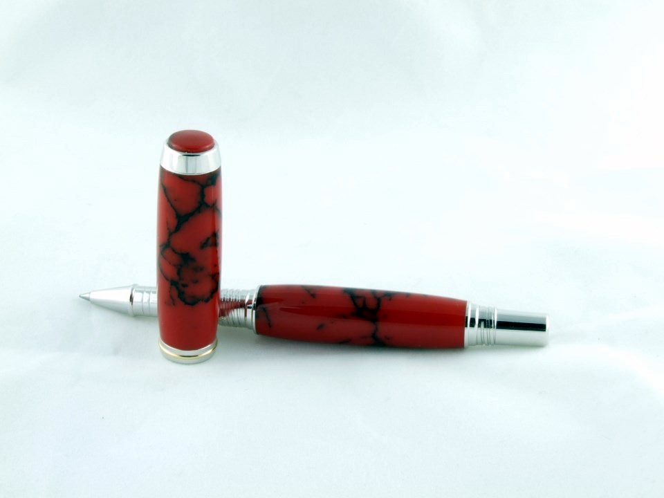 First is the Bloody Basin Red Jasper Trustone in Rhodium- Not as happy with the pics but wanted to show off my first custom finial. First time turning trustone, thumbs up. Fun project and nice skill to add