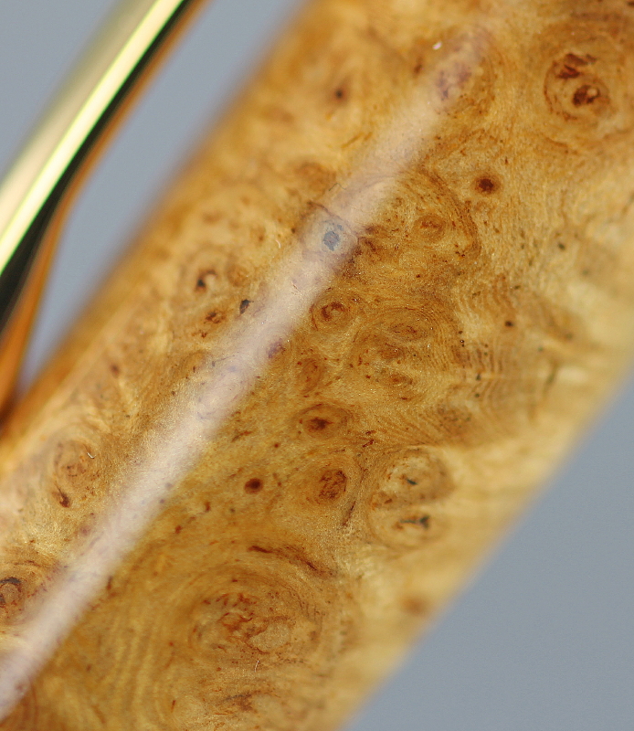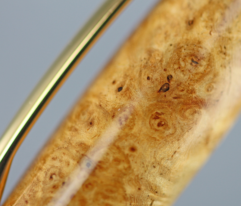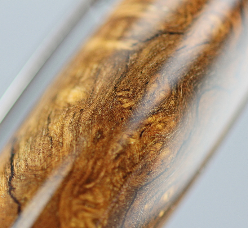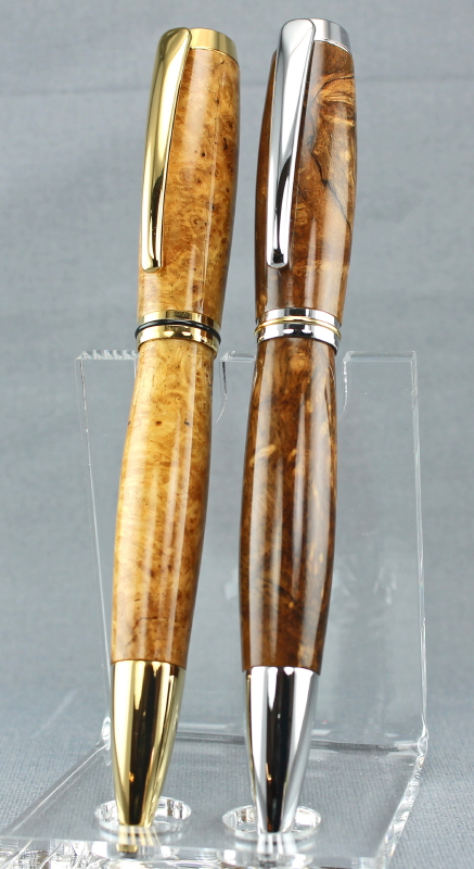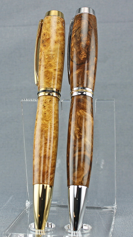 Pair of Jr. Gent twist pens made with golden Amboyna burl and Livingia burl.
