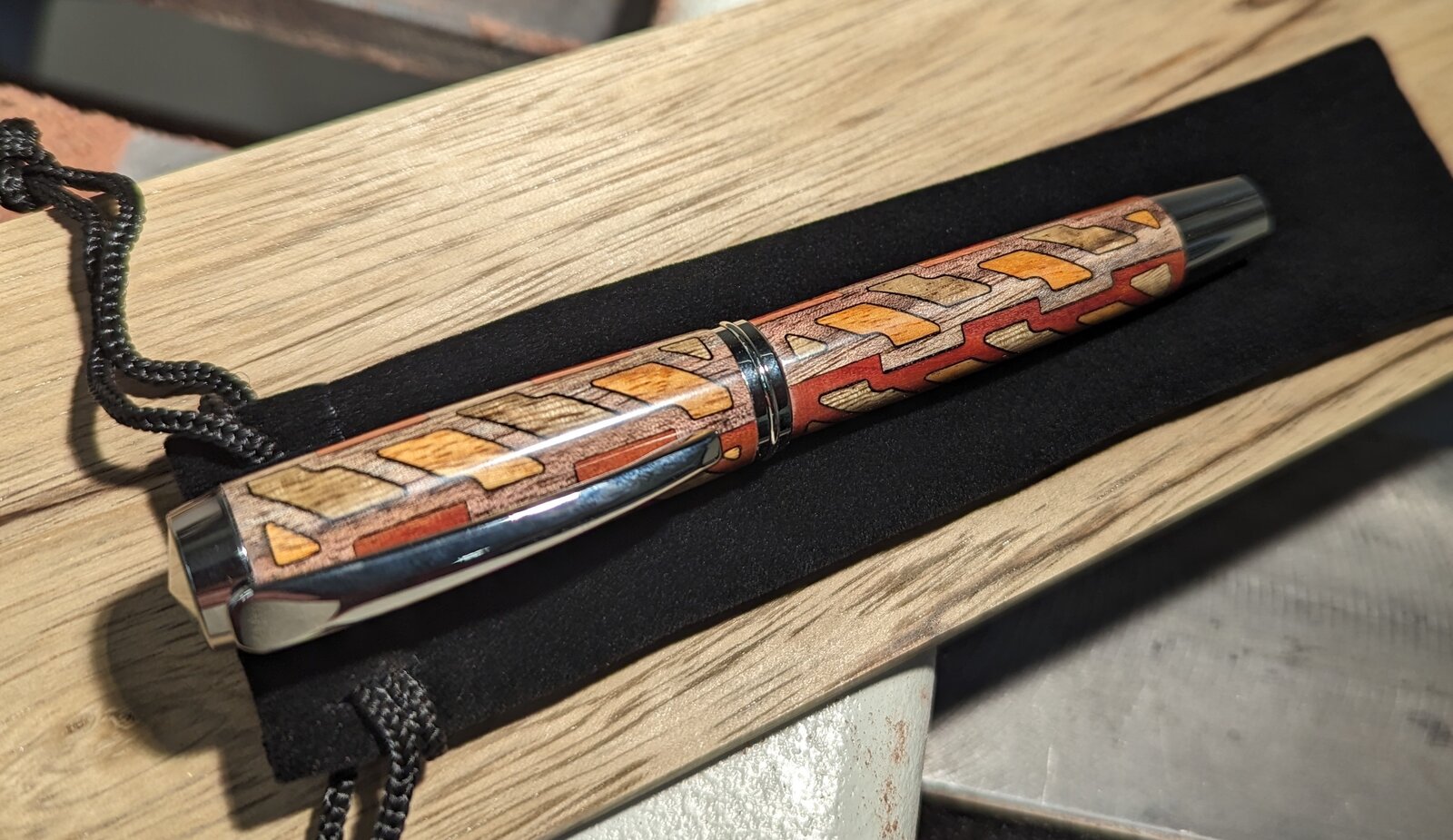 Here is a new pattern I came up with for the lasered 'box blank' approach. Next time I'll choose something more contrasting between the walnut and black limba. The other woods are canarywood and redheart.