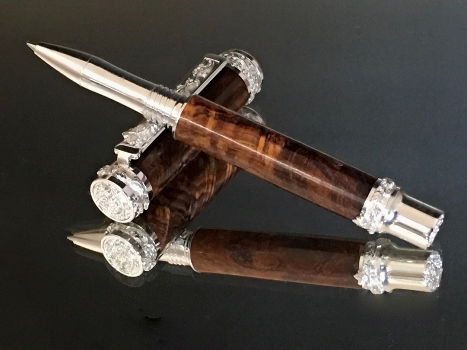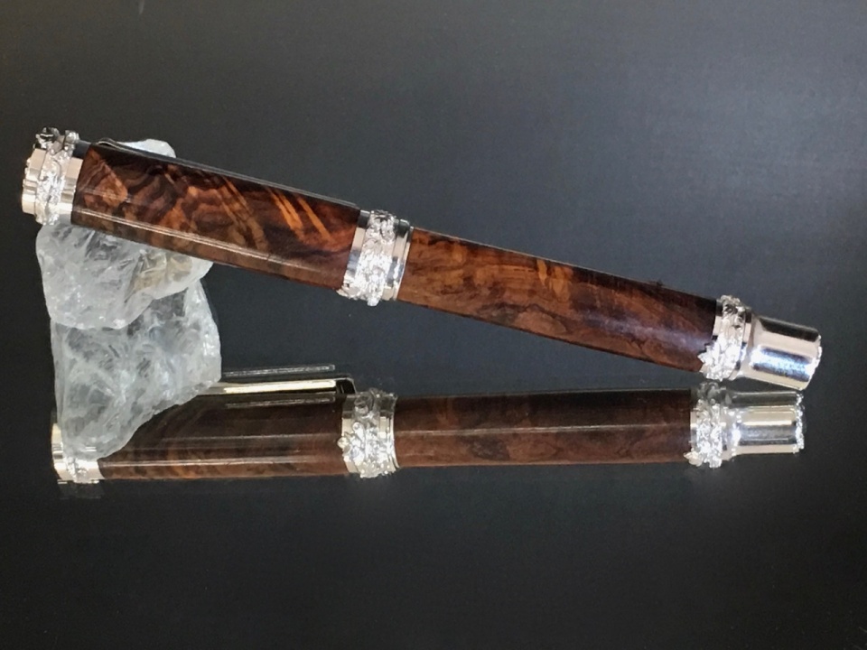I had a Jr. Great Palace Vine kit that I decided to pair with one of Steve Guzy's highly figured cocobolo blanks. Finished with 2 coats of EEE and 5 coats of Shellawax, topped with a coat of Ren wax.