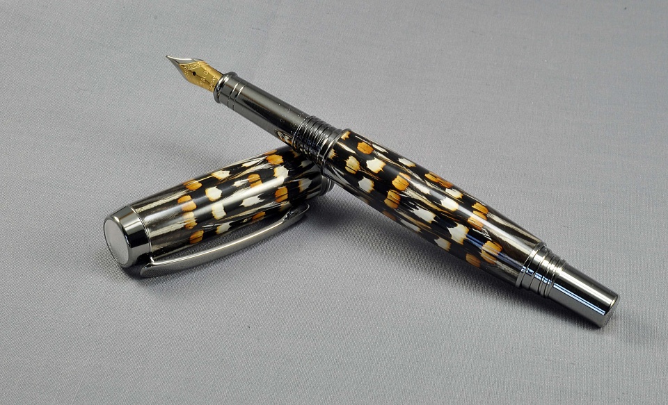 socdad Member Joined Feb 2, 2010 Messages 1,157 Location Dayton, Ohio Jan 15, 2019 #1 A convertible Jr Gent rollerball / fountain pen from one of my favorite feathers to cast. I don't make many like this one, the feathers are difficult to come by & a bit expensive ... Hope it draws some attention at my first show this year.