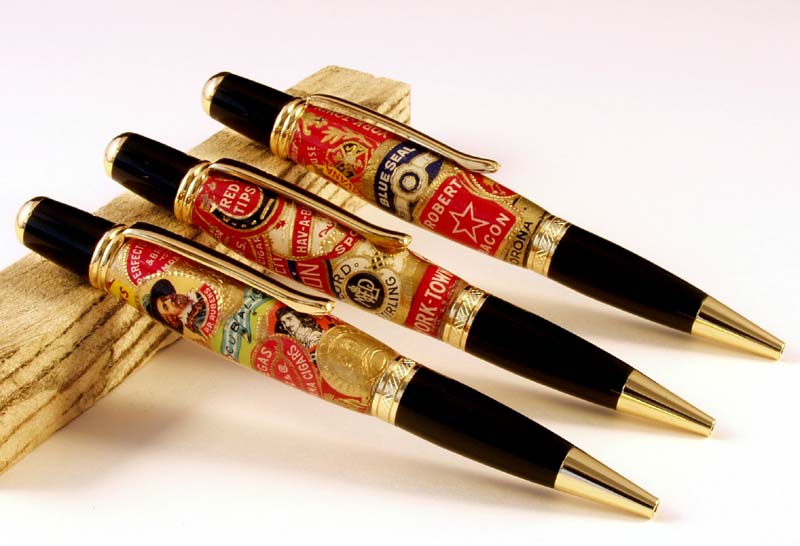 I really like the way that turned out. I got into cigar box guitars a while back which got me interested in cigar box art. There is quite a following of collectors of cigar box art. Just search cigar box labels on e-bay. There are some cool ones. I have a bunch on my wall in my work shop. The bands are collectible also. I have to try one of these pens someday. Thanks for posting and very nice work.