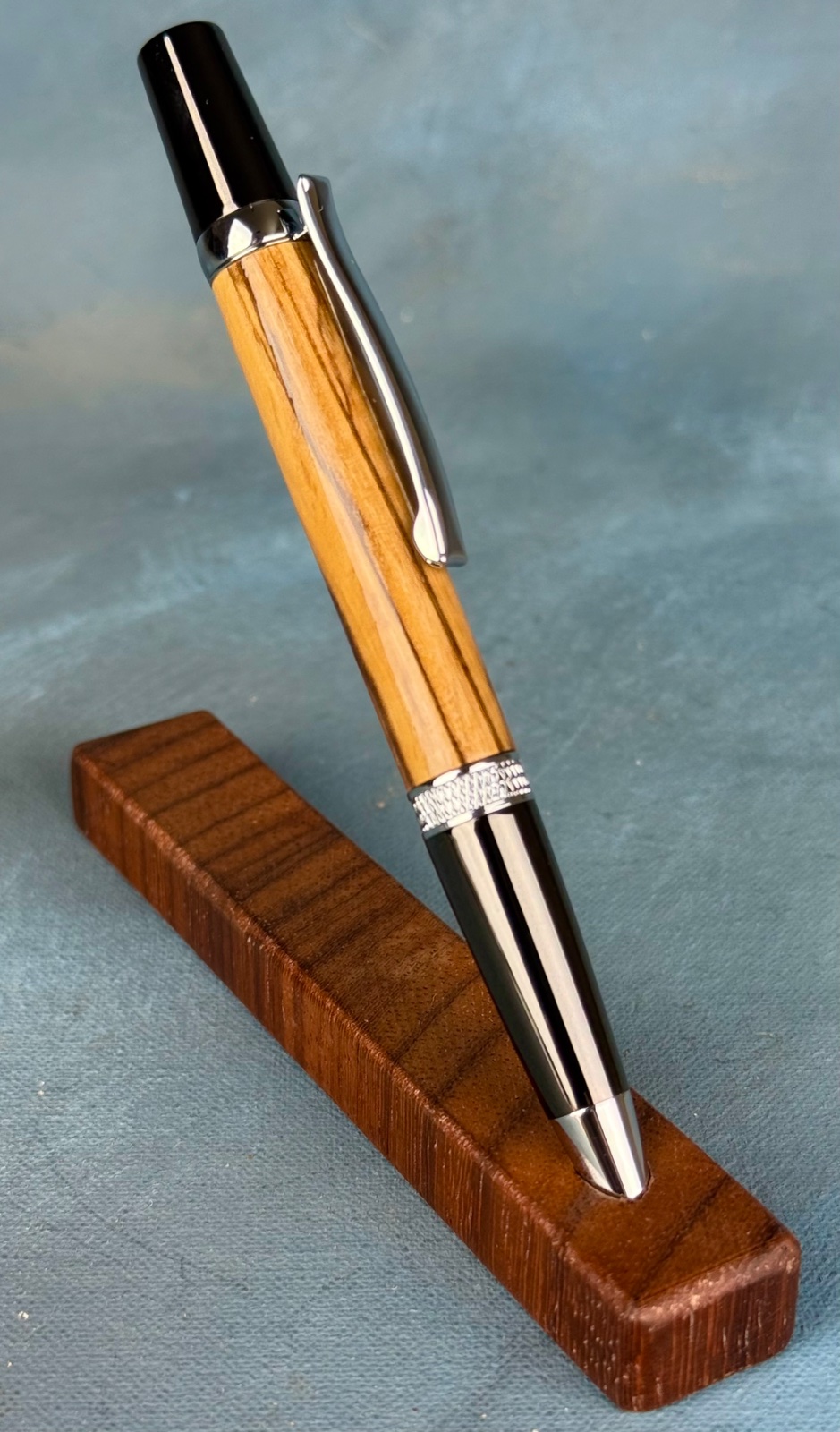 These received premium timber. L to R Bethlehem olive wood Desert Ironwood Zebra wood Bocote Blue box elder burl