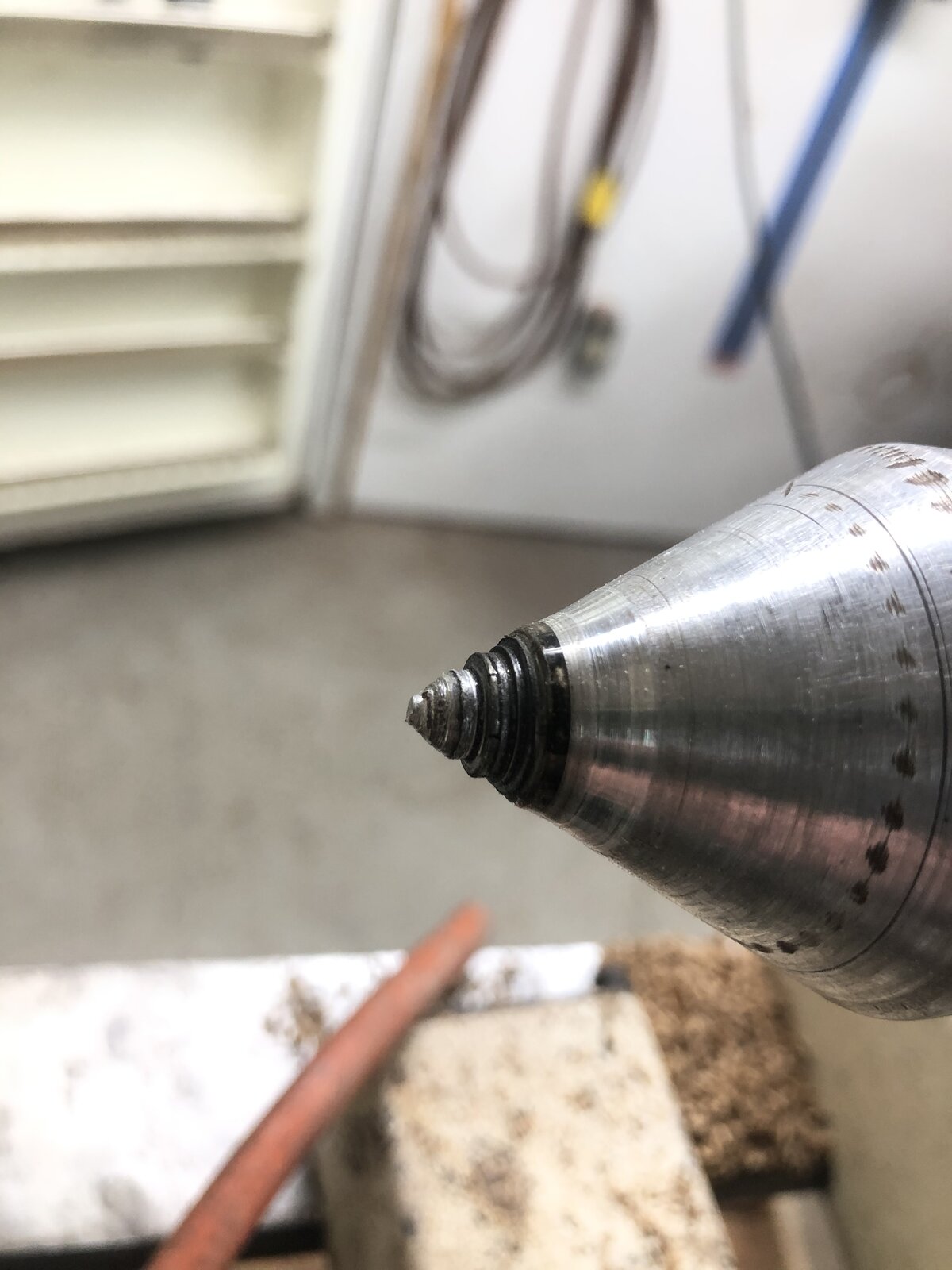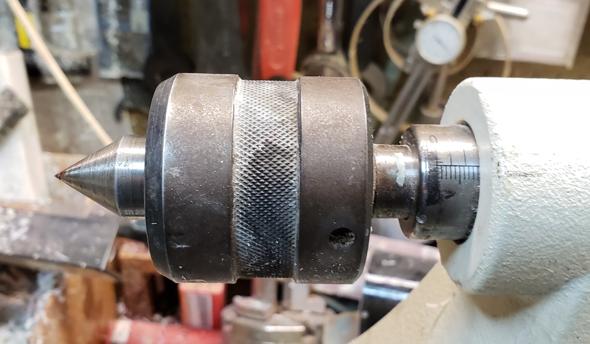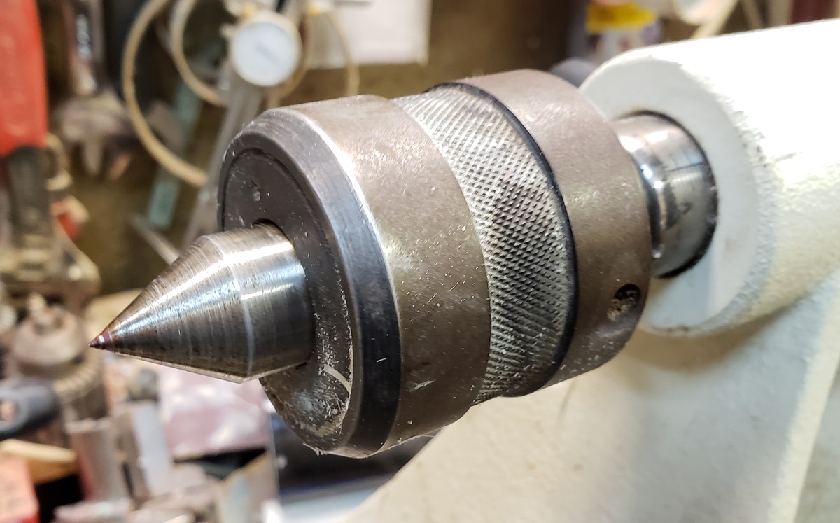 So after 2 and half years of using a mandrel I have started to venture into TBC. Here is my setup. My first question is why is my live center getting destroyed like this? Am I tightening the tailstock too much. I have made about 15 pens like this and they turned out great. I do like TBC better...but definitely need advice on how to not destroy the live center. I did use some bushings to get close to the diameter needed but then I take them off. As always I am grateful for any advice. I have learned so much from this forum and I am grateful.