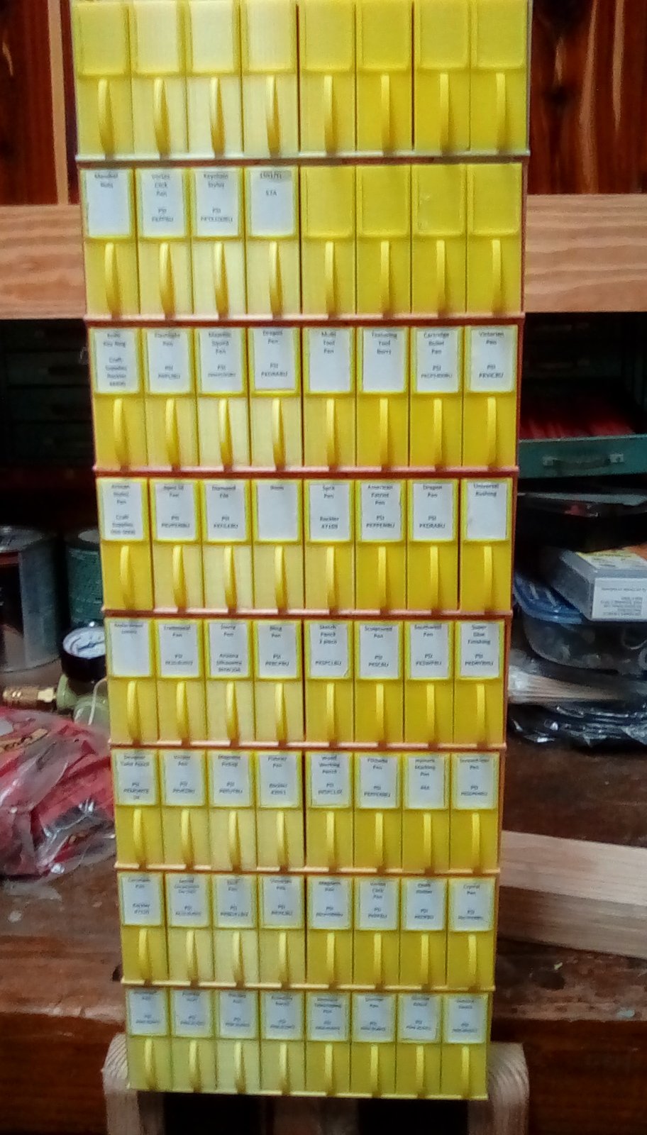 Thought it might make a good was to store my bushings when not in use. I thought I would make labels to ID the pen kit and drill size needed. Possibly label the container Penn State, Rockler, Woodcraft, etc....