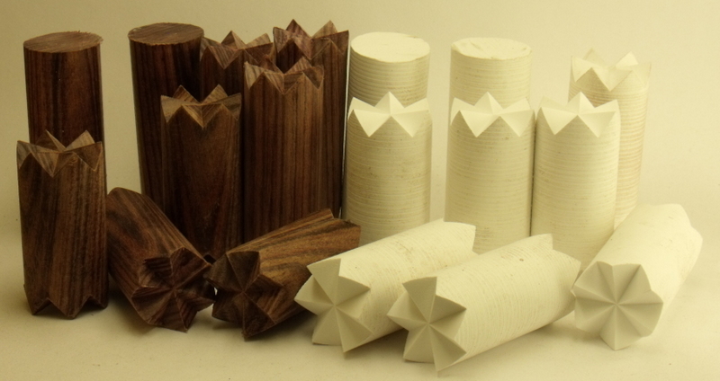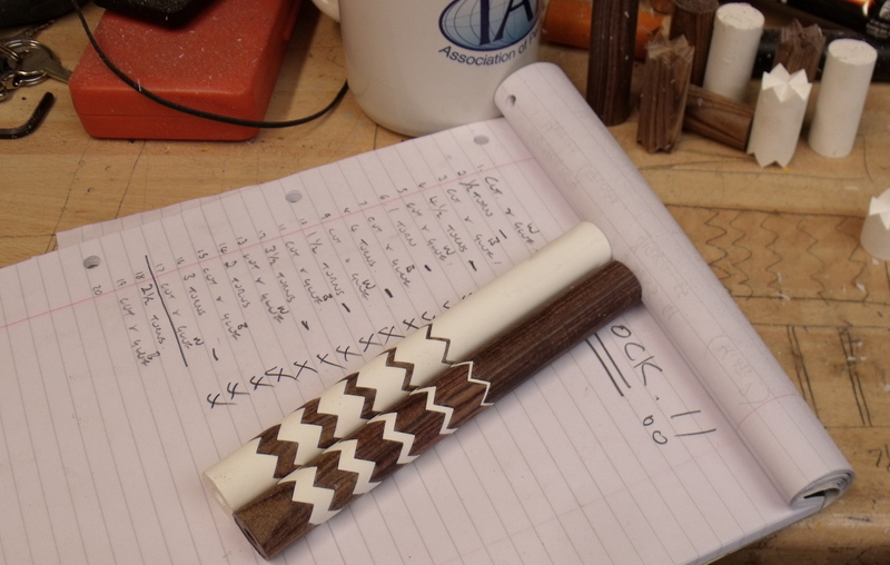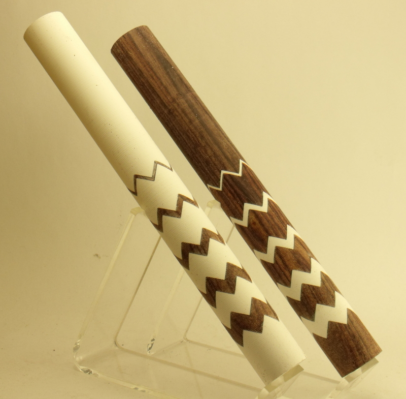 I believe the wood is called Kingwood :confused:and it's zig-zagged with some of my white PR. Each size changes width by 1.5mm.