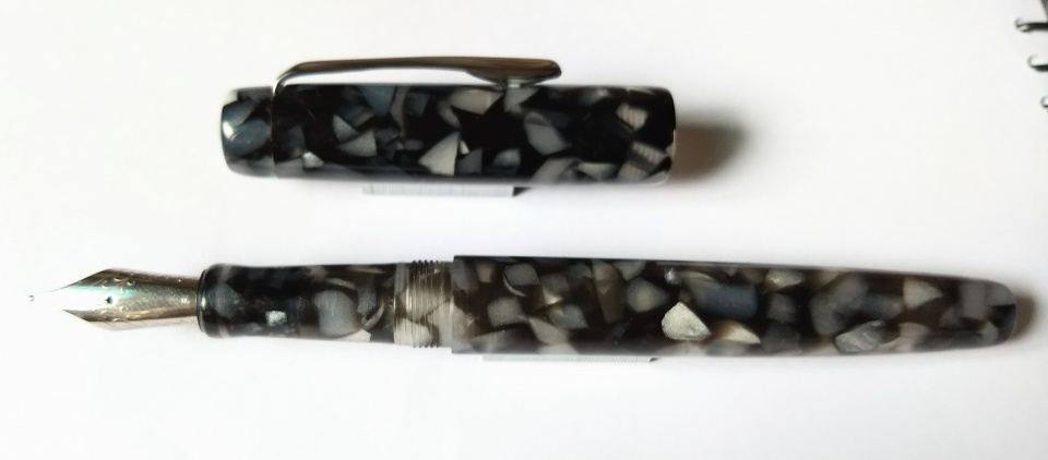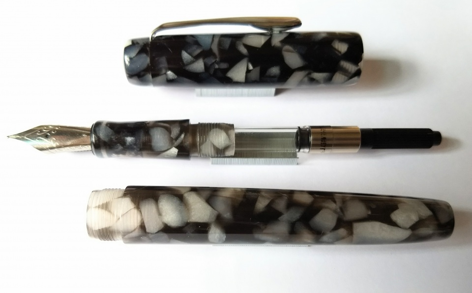 Made this pen last night. Crushed ice acrylic blank. Jowo 6 nib unit with Schmidt K5 converter. Last photo for size comparison with a ASA Maya pen. Hope you like the design. Welcome comments and criticisms.