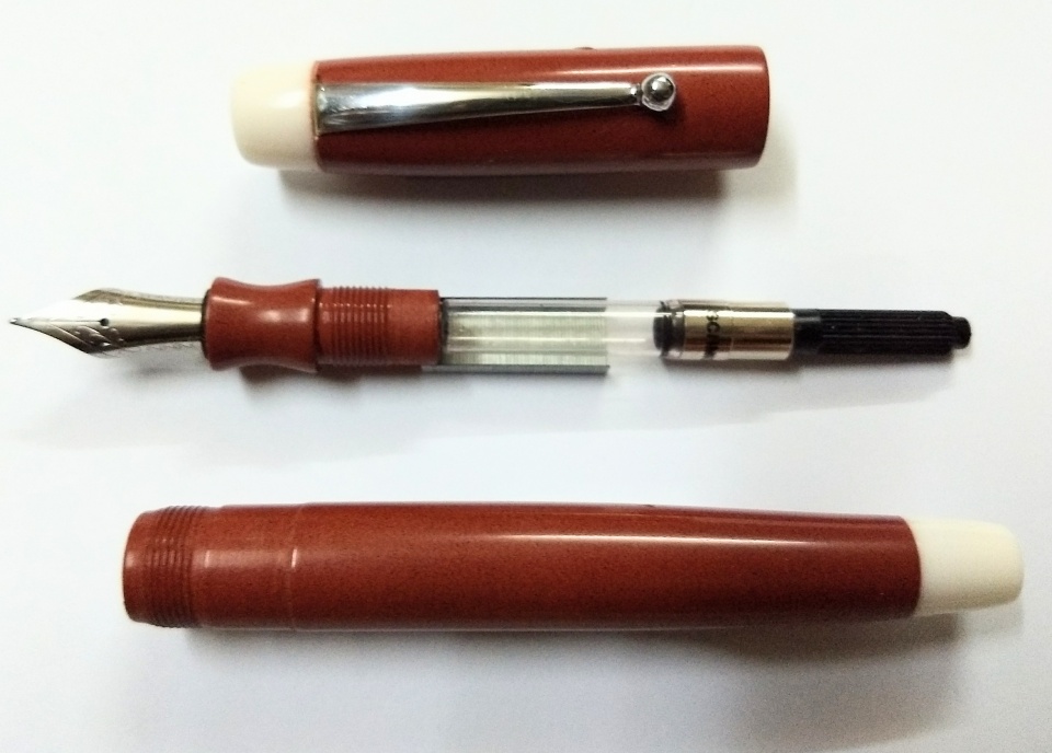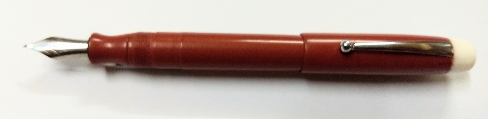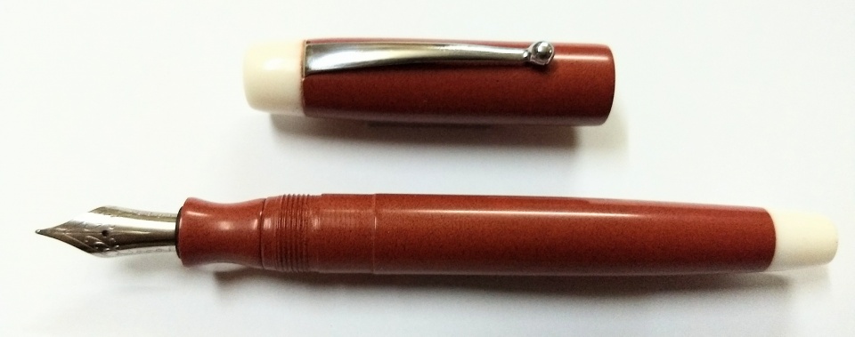The colour of the ebonite is perhaps not correctly shown in the photos, in real it is a deep pink with a mix of mustard colour.