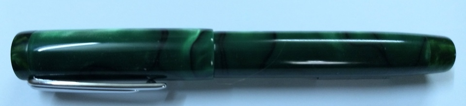 This green pen was completed just now. Made from a single 5.5 inch acrylic blank. Normally I use two 5.5 inch blanks for a kit-less pen, but this one came a single ! Lucky for me I had a 3 inch long poly resin blank cut piece leftover from another pen made earlier, so that went for the section and the end finials and the pen was completed! Fortunately the colours nearly matched.