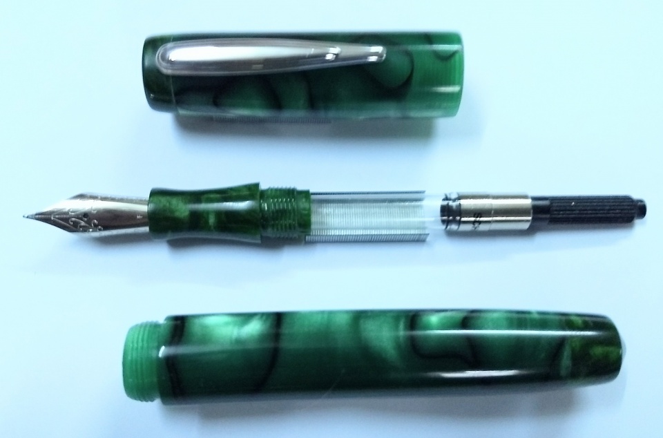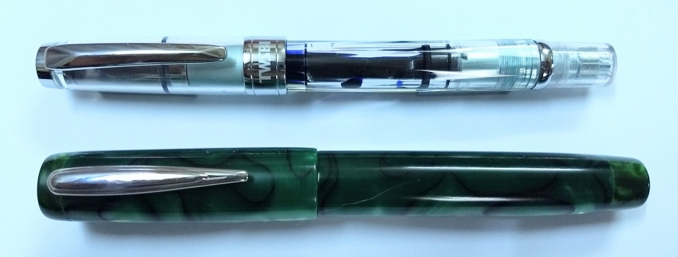 Made as a short and stubby looking pen, with Jowo 6 nib unit and Schmidt k5 converter. For size comparison the last photo is taken alongside a Twisbi diamond 580 pen.