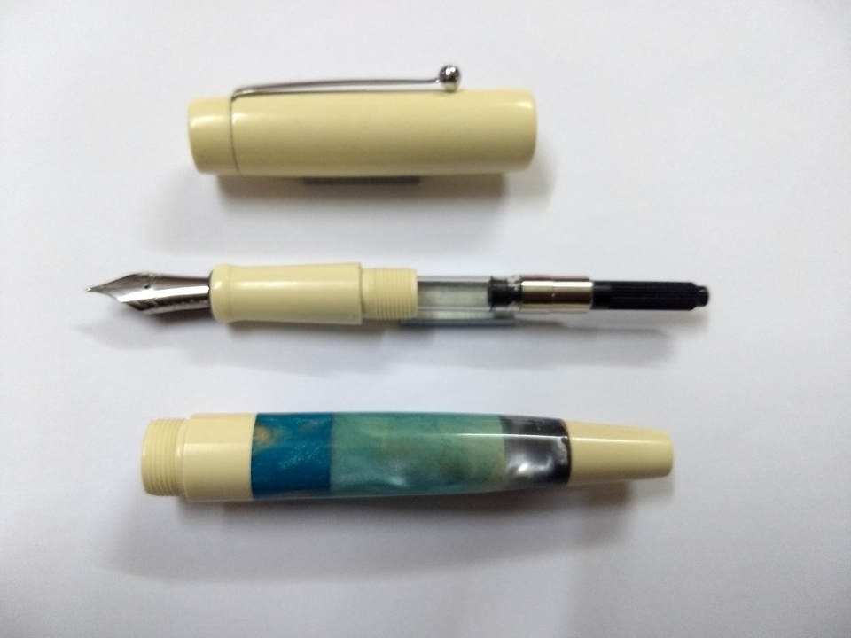 To make this pen I used an off white colour acrylic/ pmma rod and scrap pieces from older completed pens. Cap would be continuos off white colour.