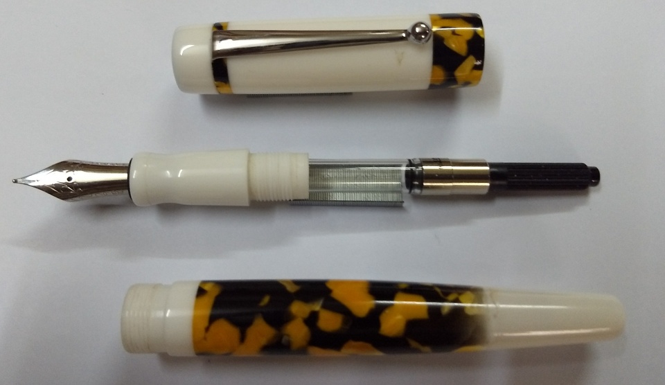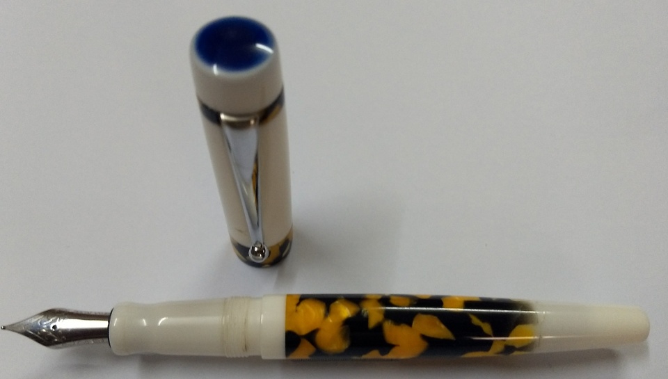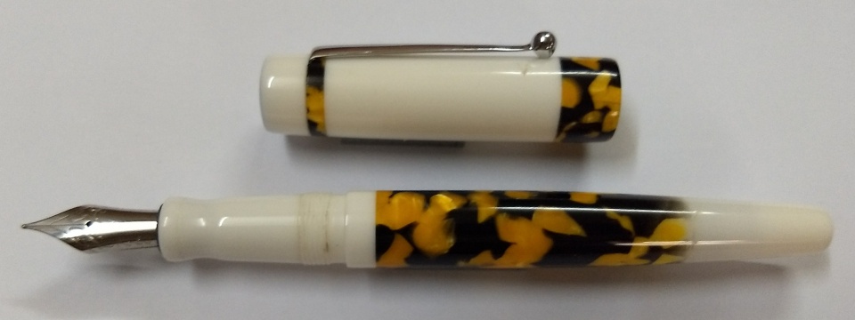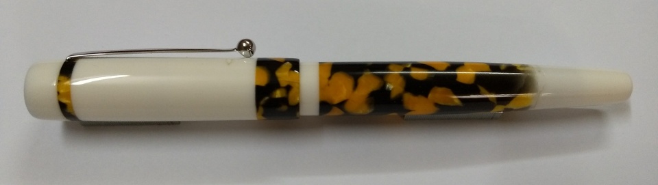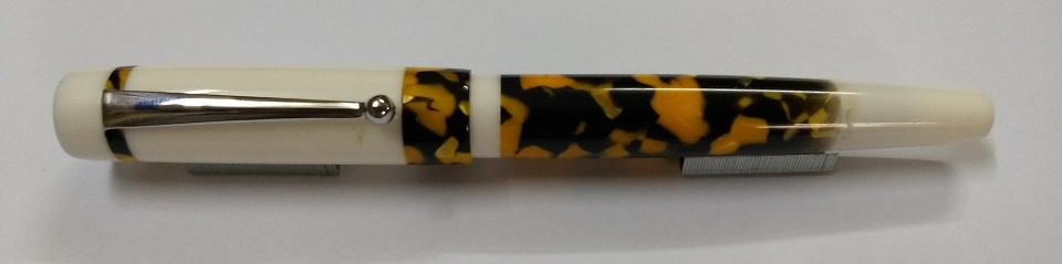 Made this pen today evening using a white pmma rod and three inches of leftover from a old blank. Jowo 6 nib unit and Schmidt k5 converter. If you might note, the style theme is mixed , transition from top to barrel end. I am quite happy with the outcome of this experiment. Hope you like this design. Welcome comments and criticism.