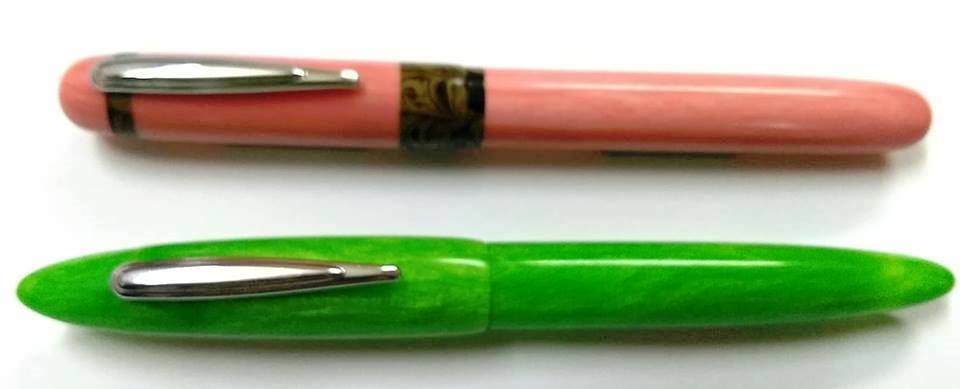 Made these two pens last night. The pink one is made from a poly resin blank cast earlier by me, the green one is a poly resin blank of brand Woodshed. Jowo 6 nibs and Schmidt k5 converter in both pens.