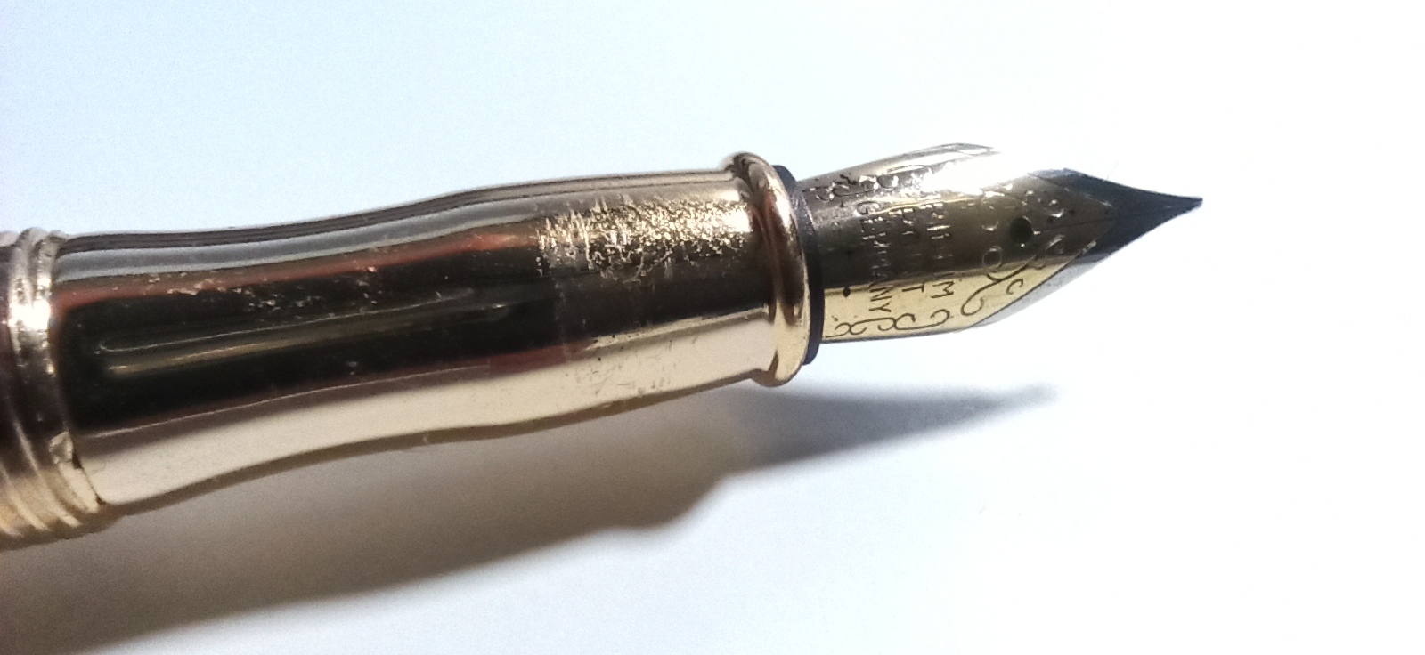 Some time ago, I picked up a pretty nice-looking FP kit (Prokraft's Byron Premium, claimed to be 24 Ct gold plated) and it's been working wonders for me (was used to cheap all-steel nibs), but a short while ago, I noticed that there were pretty noticeable scratches developing on the barrel and there were even some spots where the underlying black plastic was completely exposed (see pictures). Question is - is there a way to 'save' this pen? As in to buff out the scratches without flaking off the whole plating & fixing the black spots? Was thinking about trying applying a bit of gold foil. Thoughts?