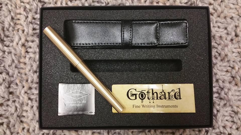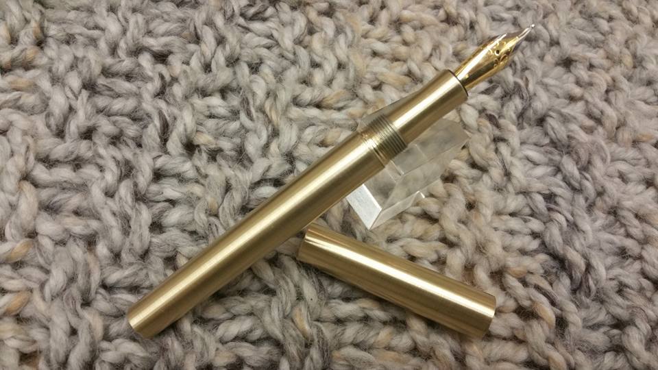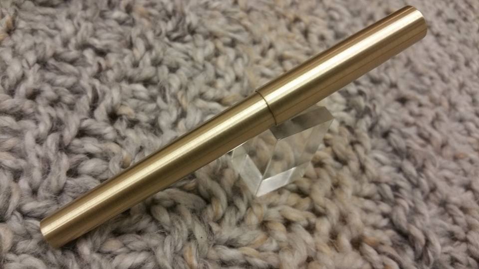 A touch of the classic today. A handmade fountain pen, made from brass. The pen weighs 48 grams , and with the lid 75 grams. Featuring a two tone gold medium JoWo Nib
