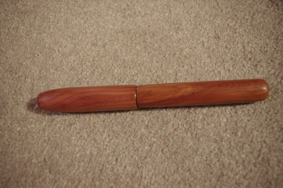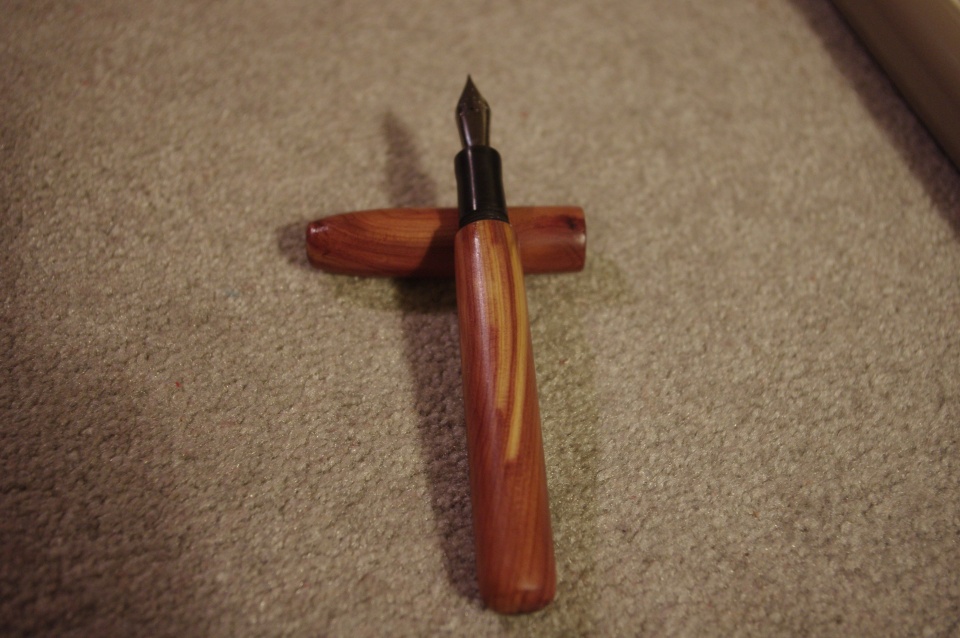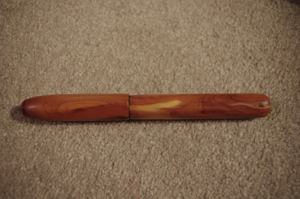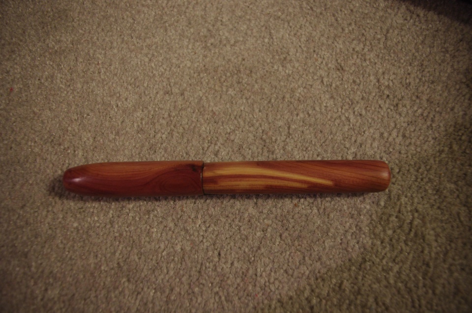 I made this pen from some cedar cutoffs from a home improvement project one of my coworkers was doing. Another nice blank saved from the burn pile at work.