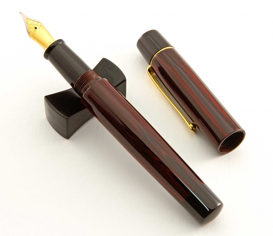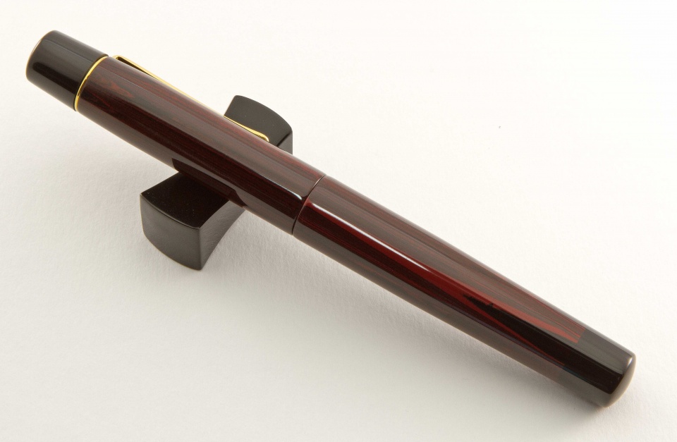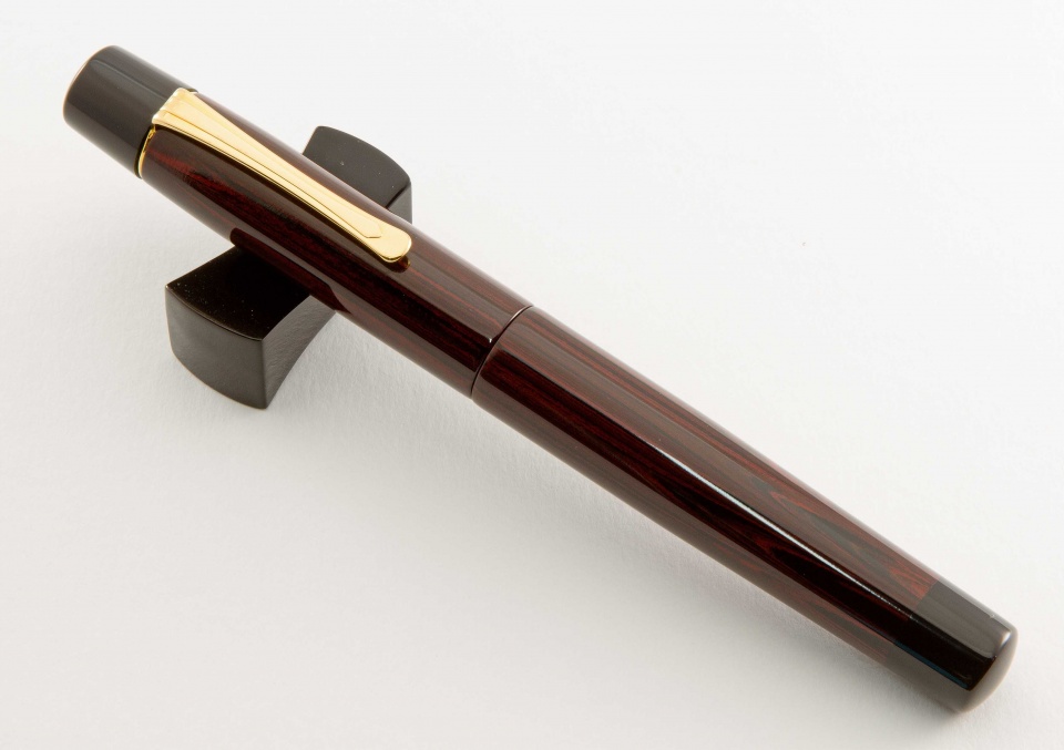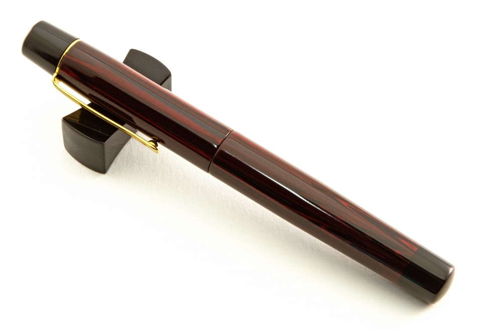 Ebonite is a classic material for fountain pens. I decided to make a rather conservative style pen, using red cumberland with black ebonite finials, to see how well it turned out from a color perspective. I liked it so much I have since acquired Japanese cumberland in reddish pink, straw color, several greens, and blue. Enjoy.