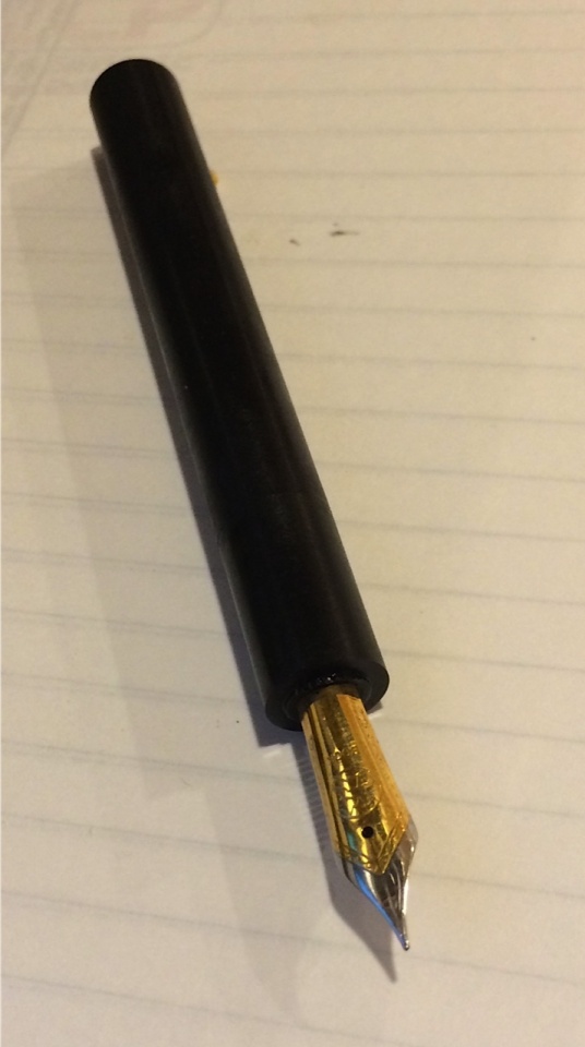It ain't pretty... but it's my very first Fountain Pen... AND the very first time I have written with a fountain pen... It doesn't have any shaping done to it... just a straight stick... but holy cow... these are EASY to make... It might have been prudent to make a cap though :biggrin: ... but that is hindsight ... LOL