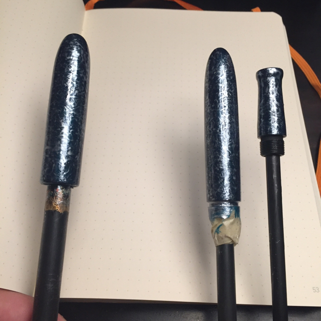 Thanks for the votes on my pen. It's been a while since I have posted on the forum. I have been working on kitless pens these last months and still hand painting them. This was my attempt at Urushi imitation (Japaning). Here are some more pics of the process. Thought you might enjoy them. The last picture is my pen alongside a Manu Propria pen for comparison.