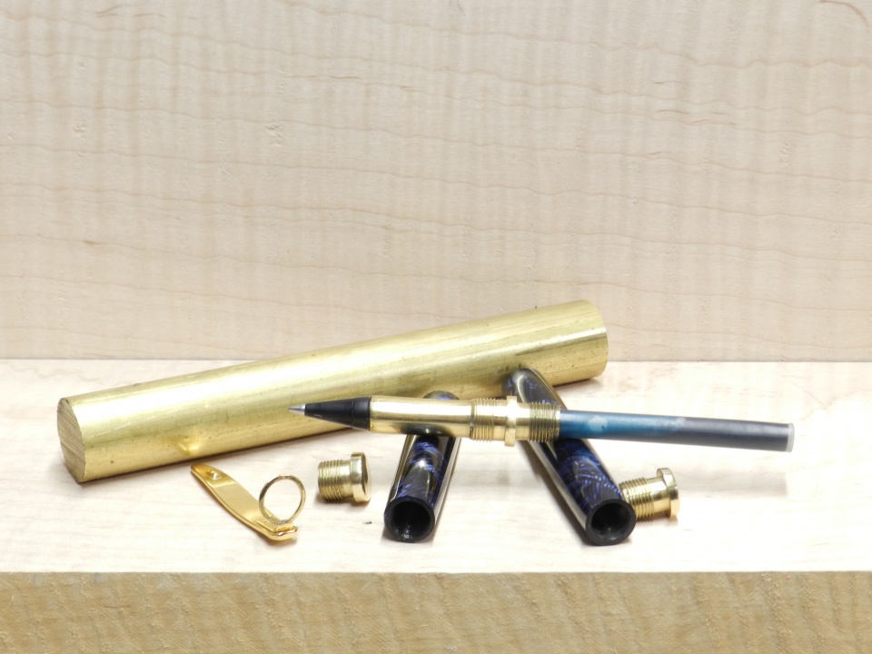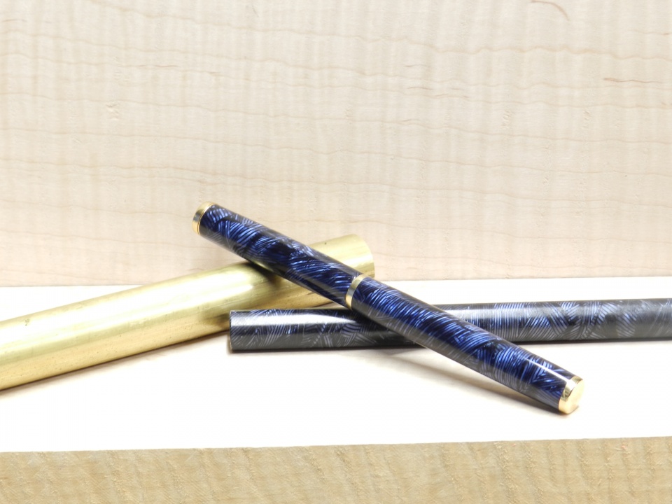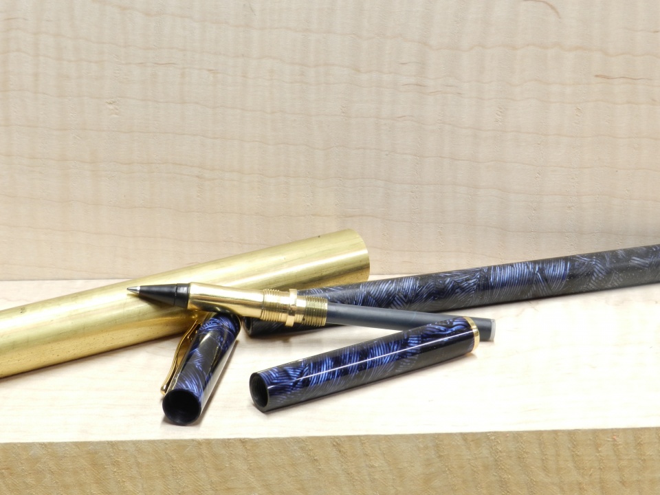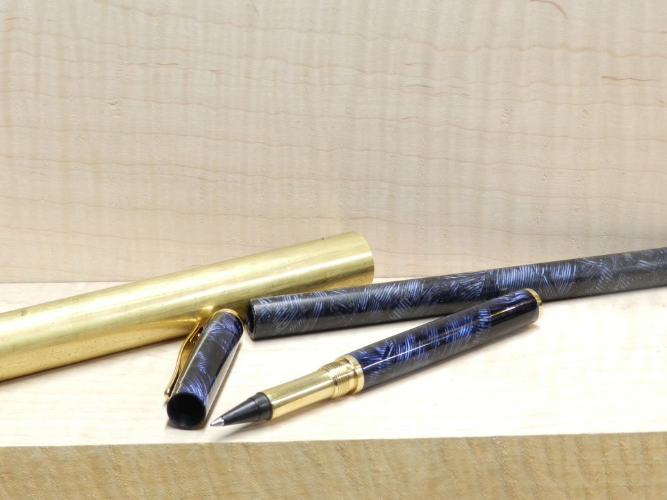 It's vintage blue lined cellulose acetate and C360 brass. The rollerball is a Schmidt PRS and it will accept a schmidt fountain pen nib. It accepts a long ink cartridge.