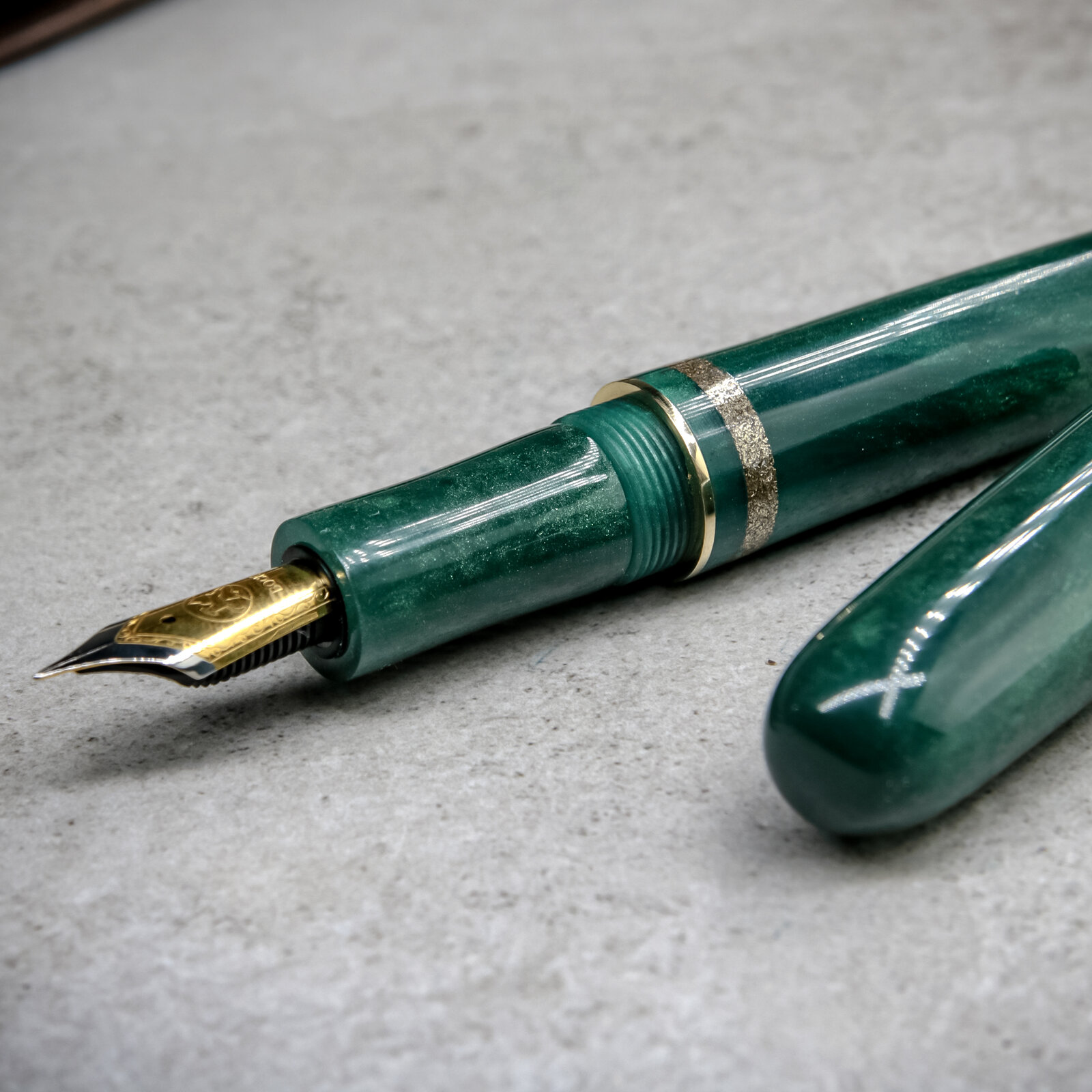 For some time now I have been trying to get buyers used to the fact that they can find a fountain pen with crushed minerals or, in this case, brass particles.