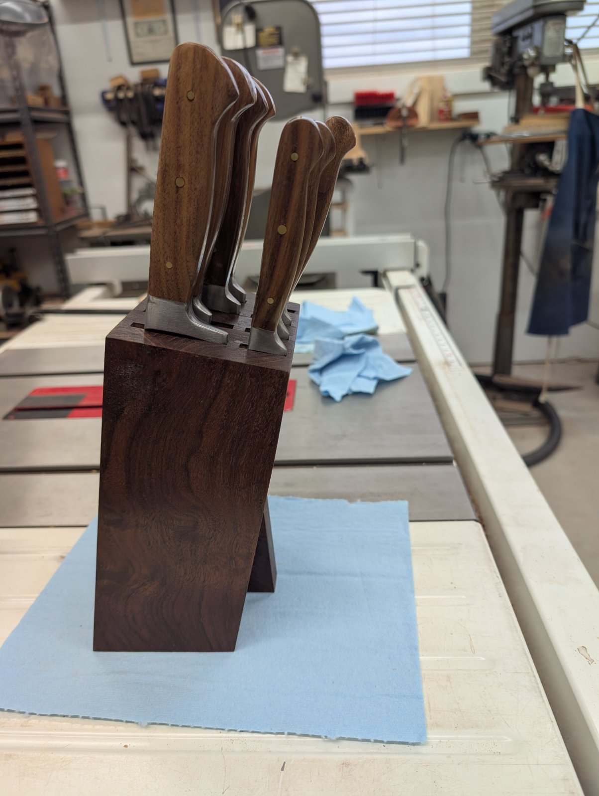Wood artistry... We have a nice but typical knife block - very functional, just fine. But to have a true work of art - priceless. Very, very, well done. Thanks for sharing. (I love Walnut). 👏 👏