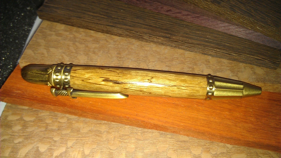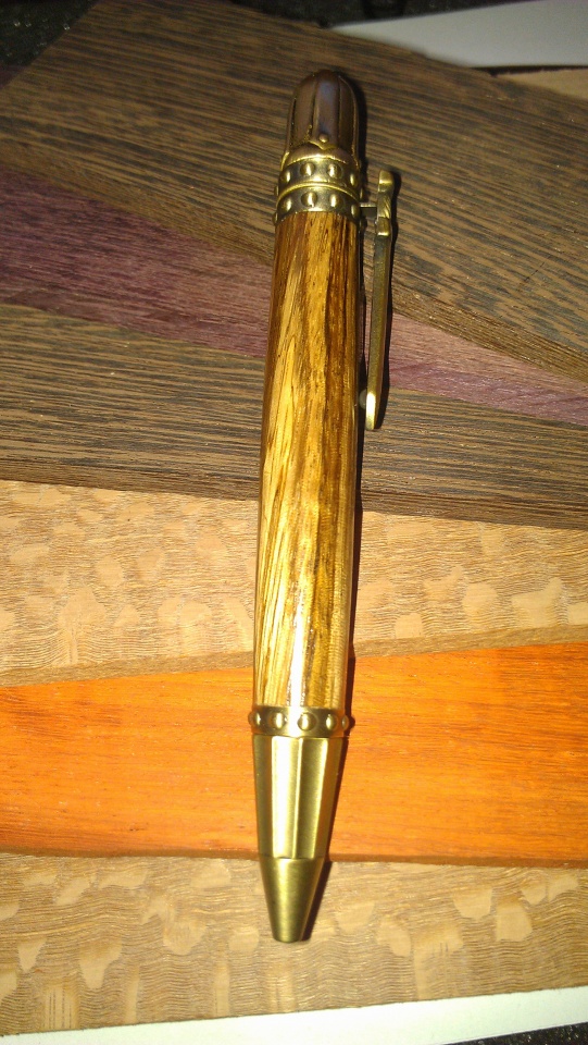 Finally got back into the workshop after a couple of weeks. This is a Knight's Armor Pen in Antique Brass with Zebra wood.